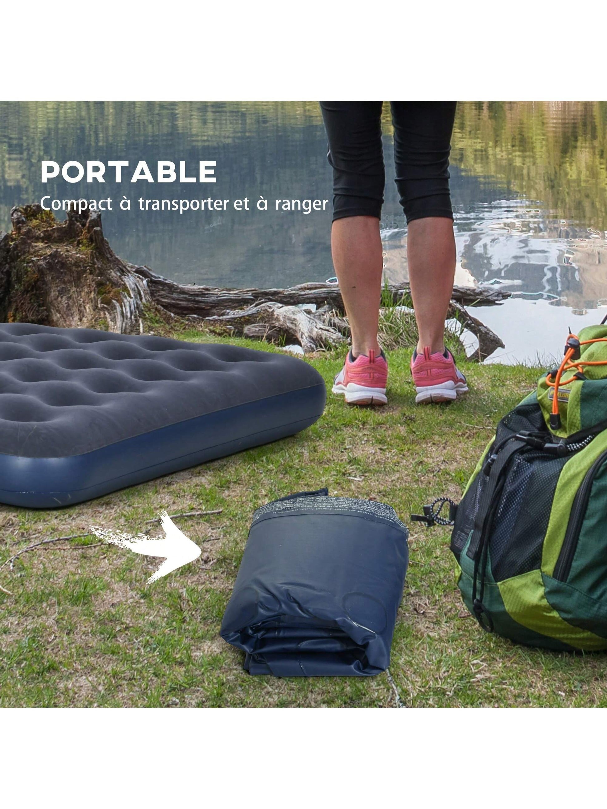 D¨¦couvrez le confort d'un matelas pneumatique de grande taille, d'une ¨¦paisseur de 22 cm, qui se gonfle compl¨¨tement pour soutenir et soulager la pression sur votre corps. Facile ¨¤ gonfler ¨¤ l'aide de la pompe incluse, vous passerez d'un ¨¦tat plat ¨¤ un ¨¦tat plein en 2 ¨¤ 6 minutes.