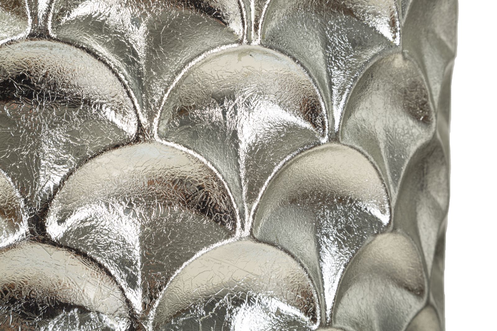 Set di 2 vasi rotondi in metallo argentato con eleganti decorazioni irregolari in rilievo.