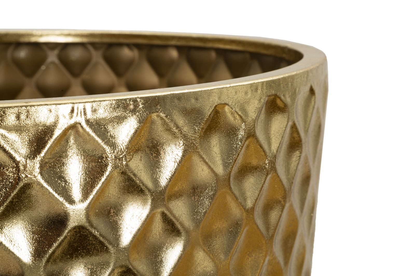 Set di 3 eleganti vasi dorati, con trama geometrica in rilievo perfetti per decorare ogni ambiente con stile e raffinatezza. Ideali per piante o come elementi decorativi singoli.