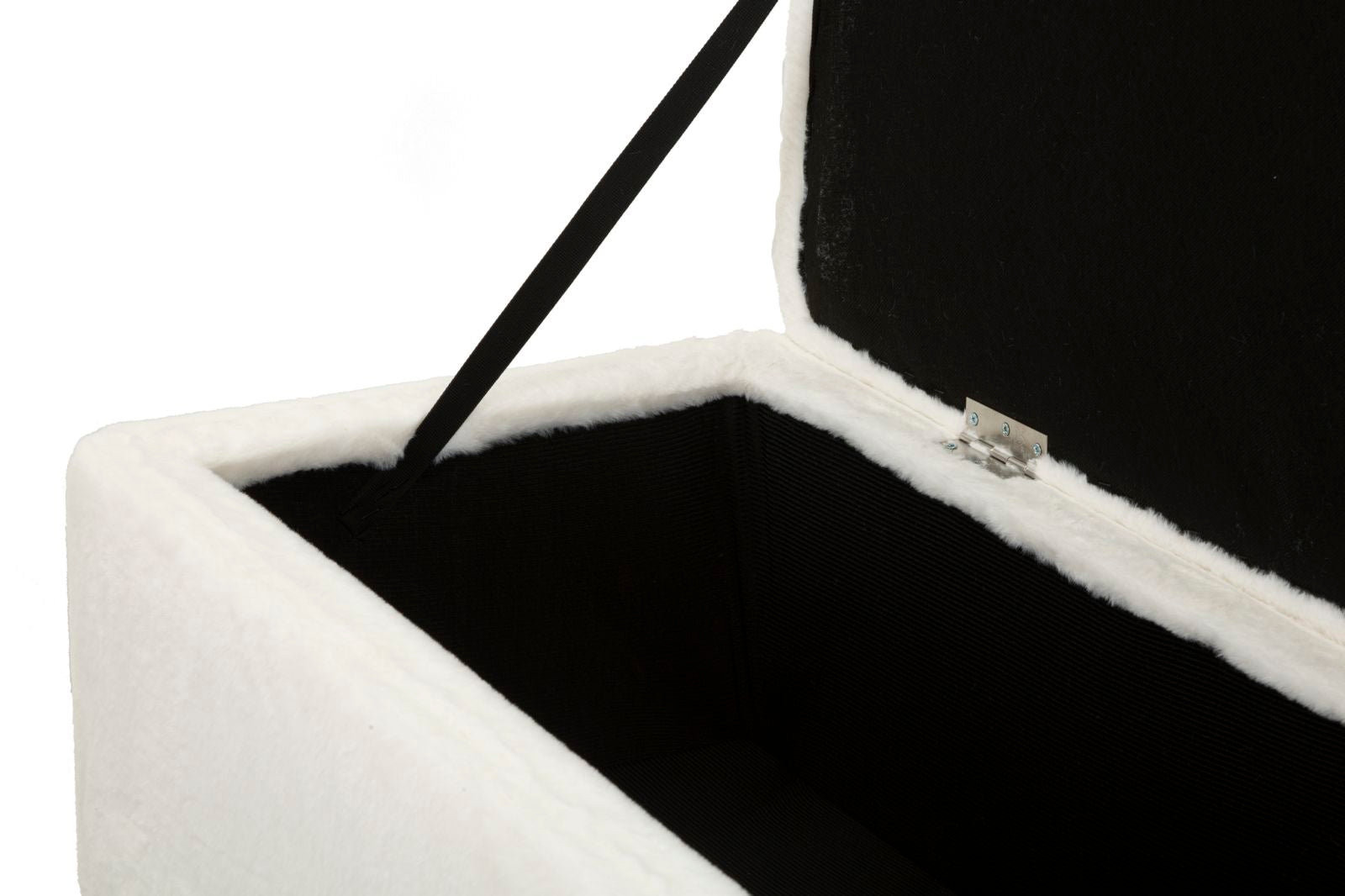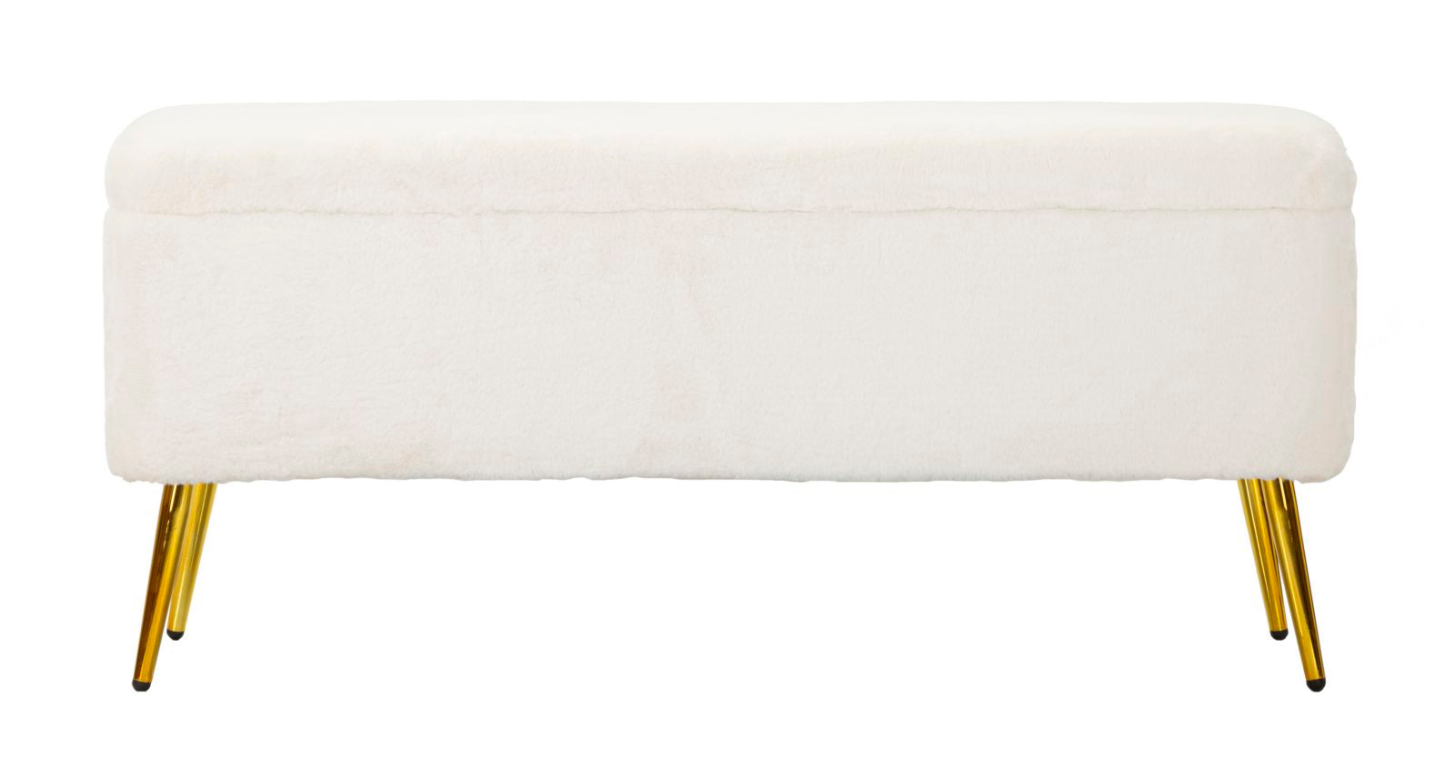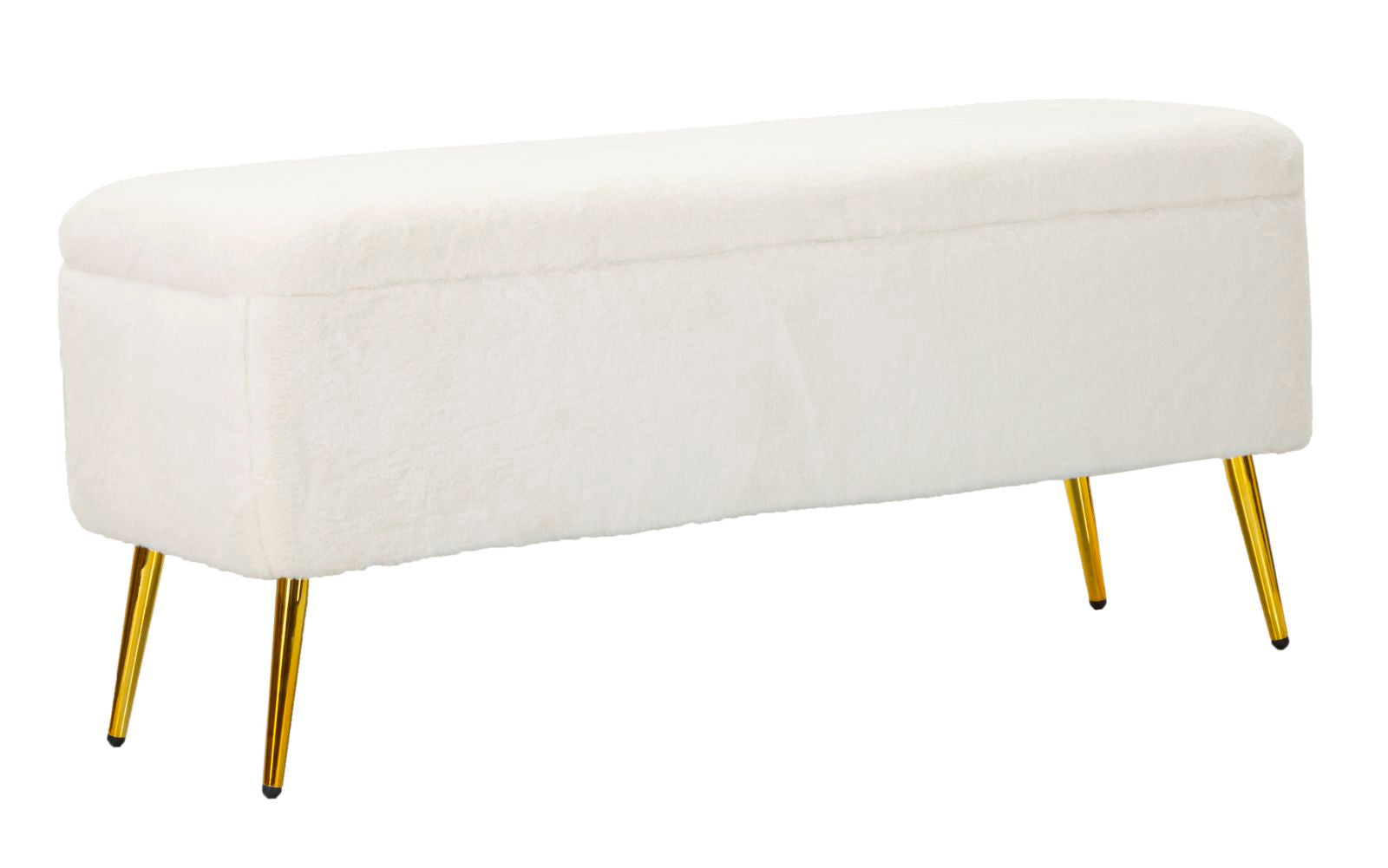 Panca con contenitore e gambe dorate da assemblare, rivestito in morbida pelliccia sintetica. Ideale per ambienti moderni e raffinati, aggiunge un tocco di lusso e comfort.