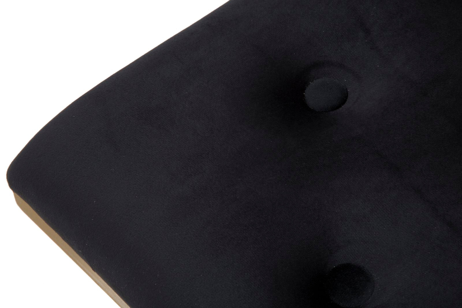 Panca in metallo dorato e tessuto nero dalle linee geometriche ed ipnotiche. Elementi d'arredo che ricordano i lussuosi ambienti dell'Hotel Plaza di New York. Ricrea l'atmosfera magica del Grande Gatsby nel tuo interior