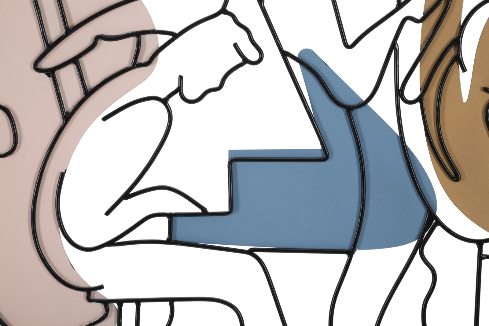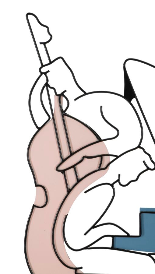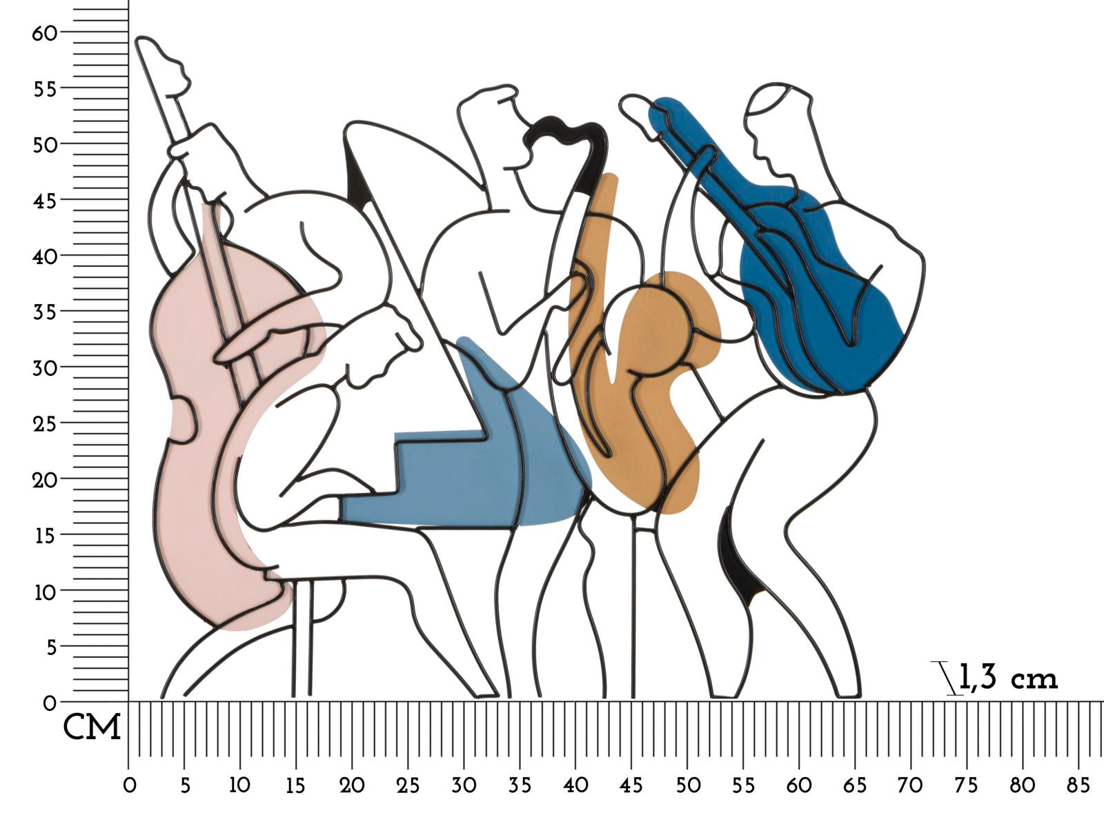 Pannello decorativo 3D da parete in metallo raffigurante 4 musicisti con i loro strumenti impreziositi da colori sgargianti che donano un tocco di luminosit¨¤.