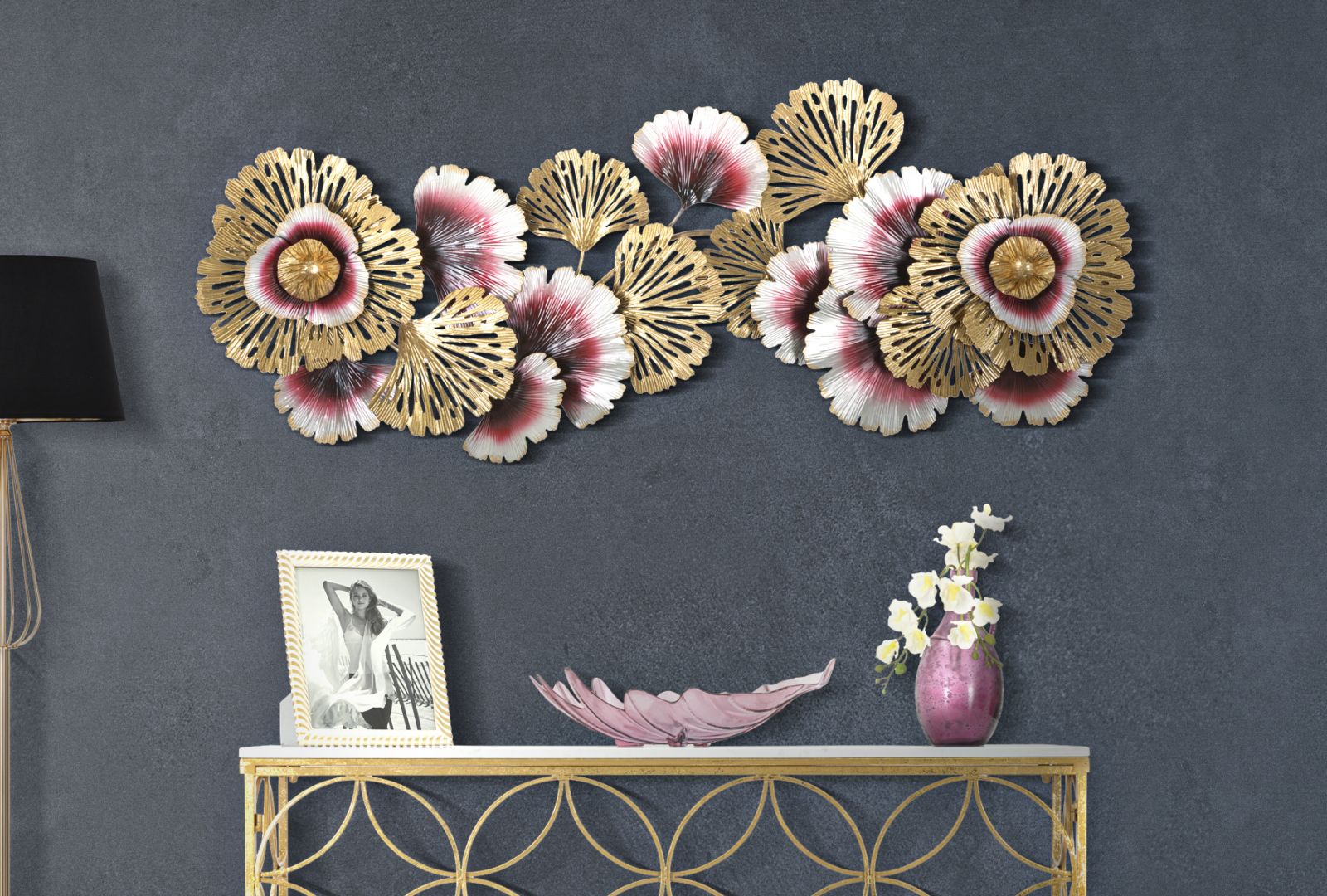 Pannello in metallo dal design floreale. I pannelli 3D sono il nuovo trend per decorare le pareti. Il metallo laccato si declina in forme geometriche, vegetali o animali che conferiscono un'allure glamour e sorpendente ad ogni ambiente.