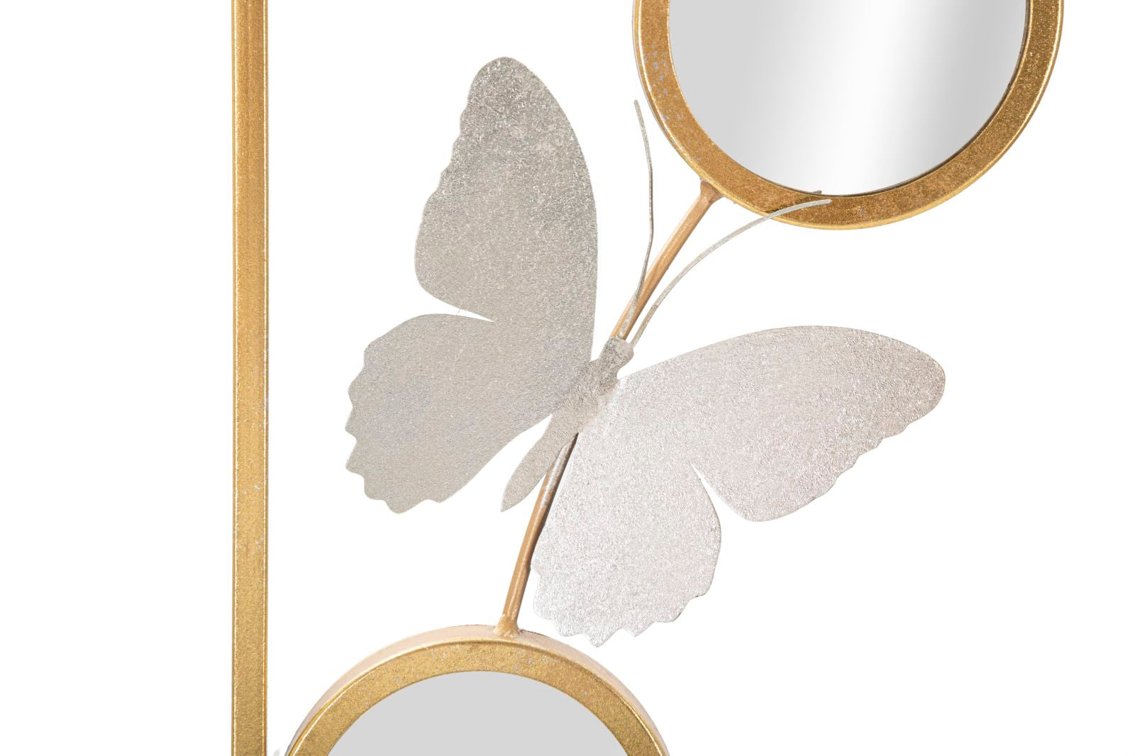 Pannello decorativo 3D da parete composto da farfalle multicolore e specchietti rotondi racchiusi in una cornice rettangolare