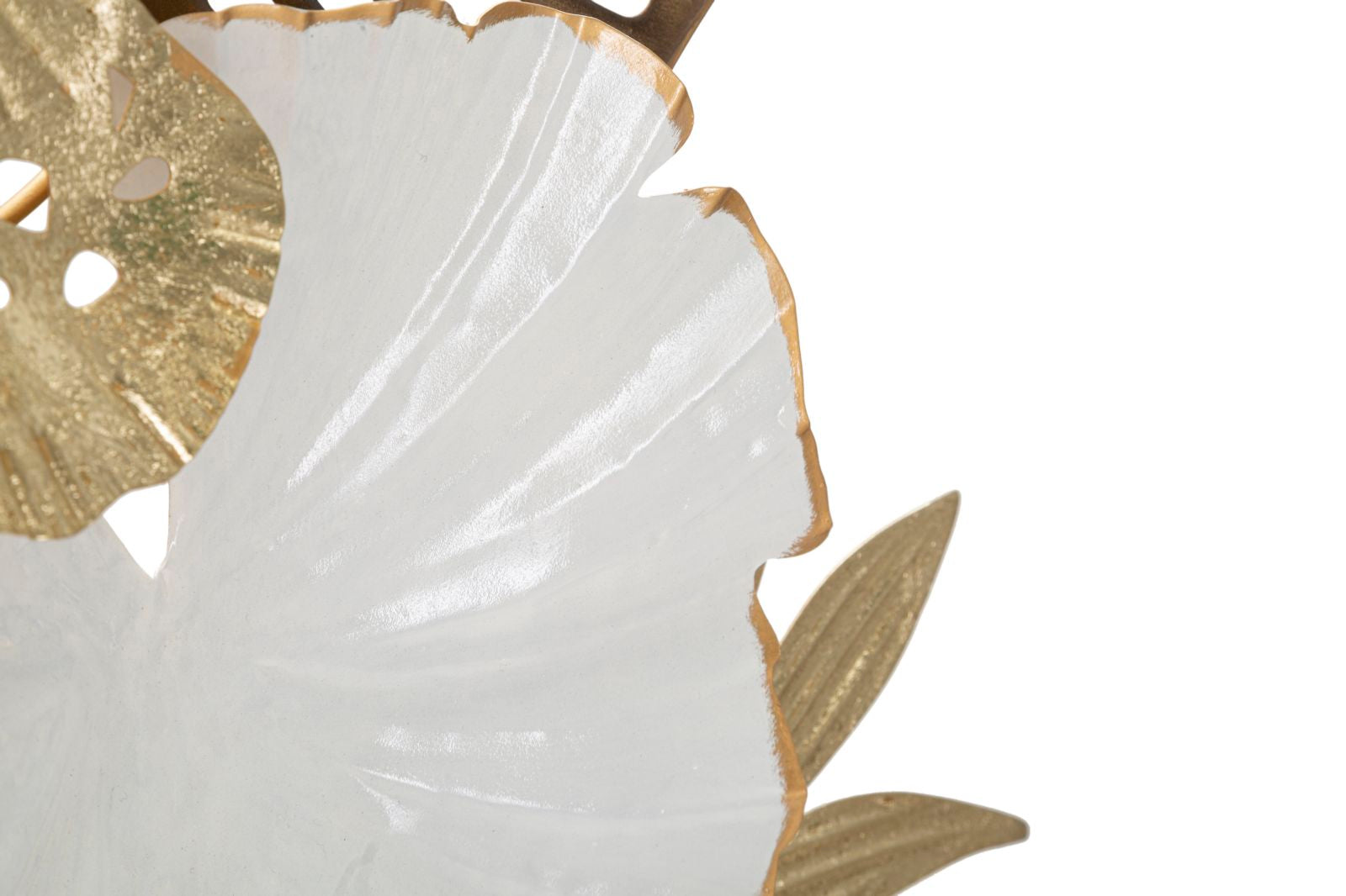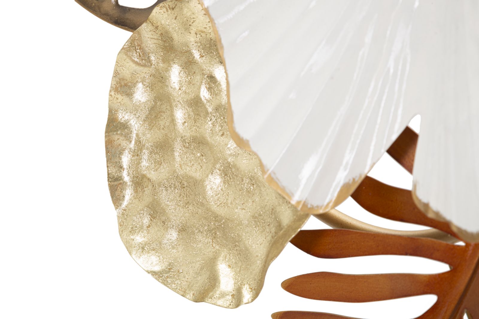Pannello decorativo 3D da parete in metallo raffigurante un insieme di foglie in vari colori.