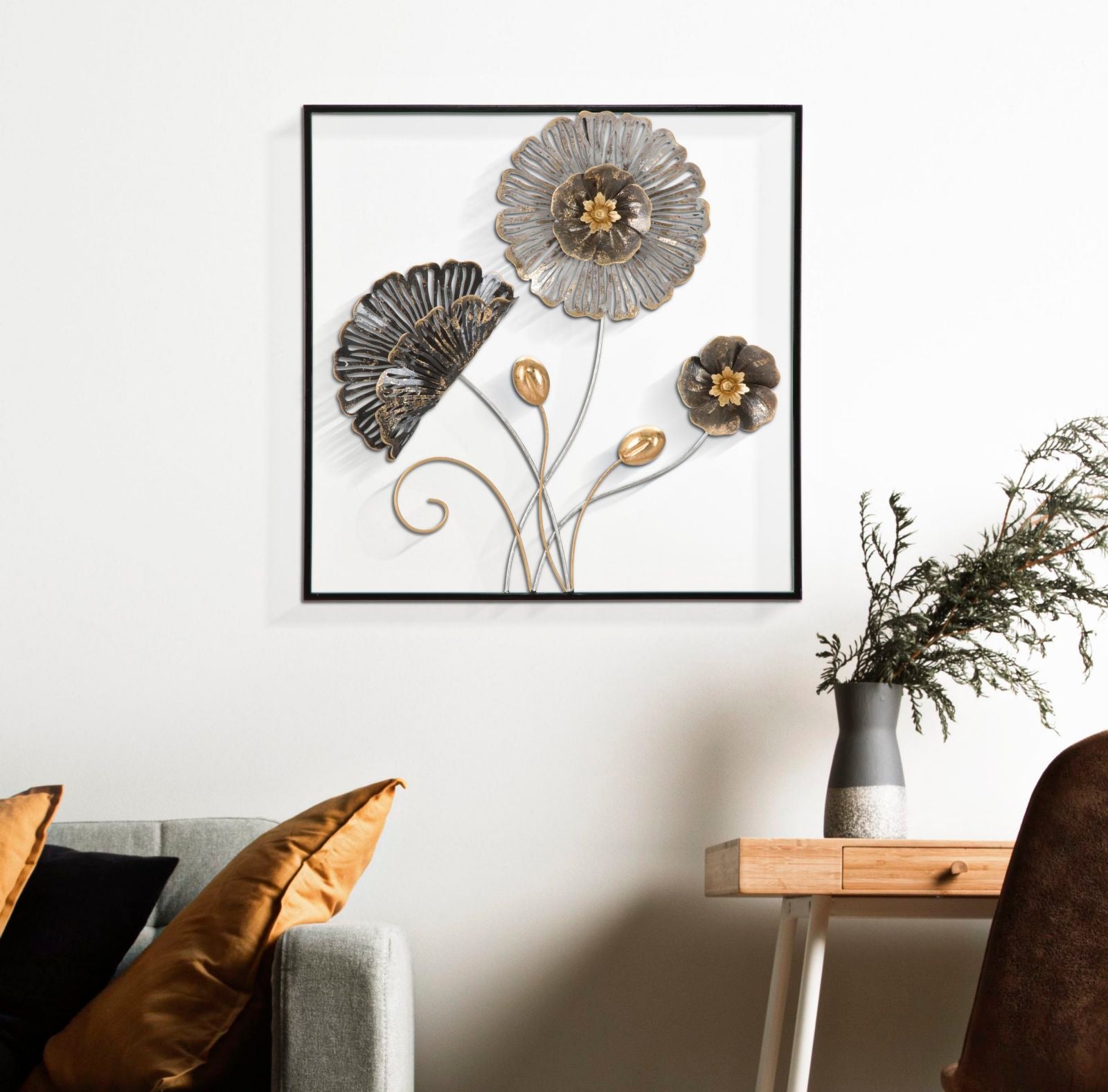 Pannello in metallo con fiori e foglie. La natura incontra l'arte. I pannelli 3D sono il nuovo trend per decorare le pareti. Il metallo si declina in forme geometriche, vegetali o animali che conferiscono un'allure glamour e sorpendente ad ogni ambiente