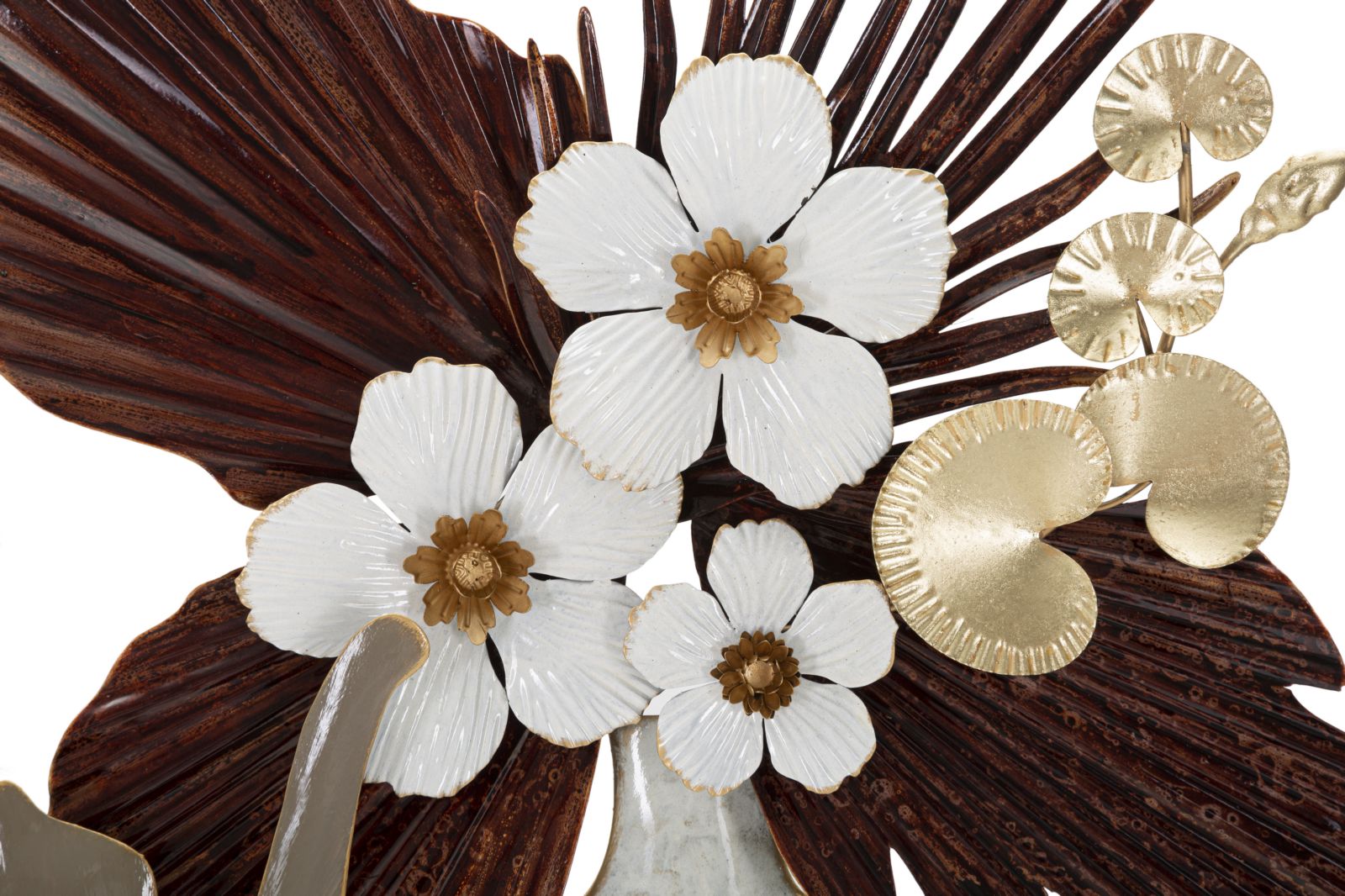 Pannello decorativo 3D da parete in metallo raffigurante un gatto che gioca con un vaso di fiori.