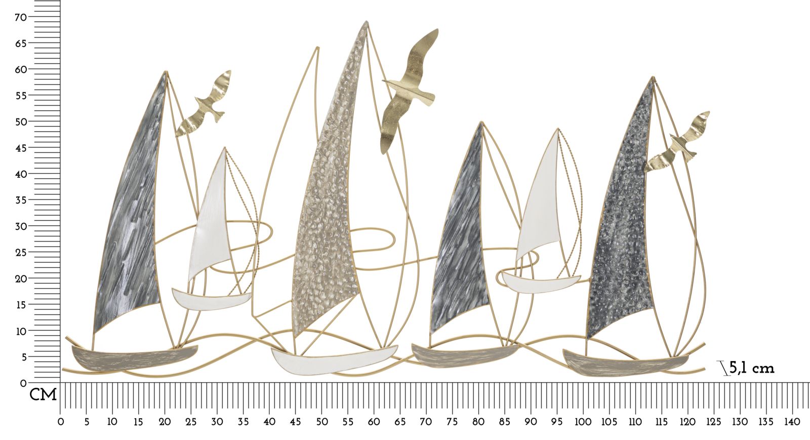Pannello decorativo 3D da parete in metallo composto da barche a vela in regata.