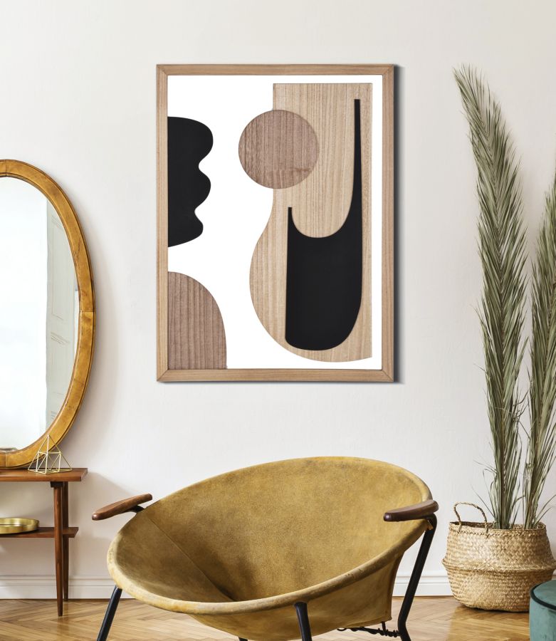 Pannello decorativo 3D da parete in legno composto da figure geometriche astratte. I toni caldi si accostano perfettamente ad ogni tipologia di arredo.