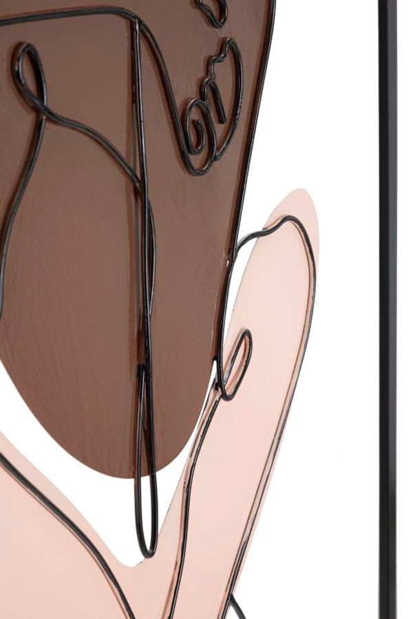 Pannello decorativo 3D da parete in metallo dalle linee morbide che vanno a comporre la figura di una coppia. Impreziosito da inserti colorati che donano luminosit¨¤.