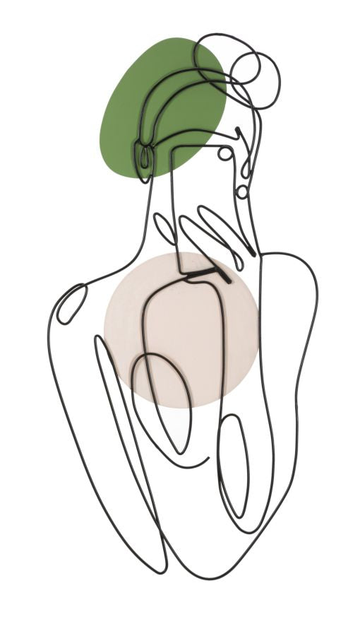 Pannello decorativo 3D da parete in metallo nero dai tratti delicati che vanno a comporre la figura di una ragazza con il suo cellulare. Impreziosito da parti colorate che donano luminosit¨¤.