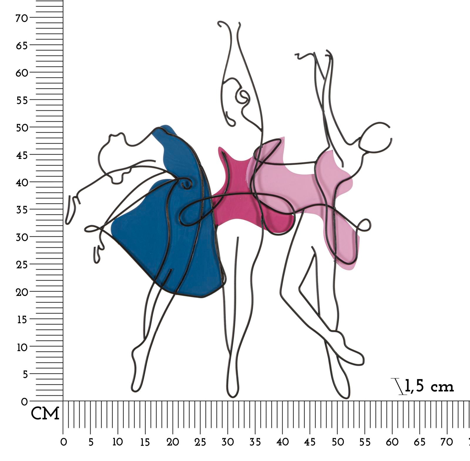 Pannello decorativo 3D da parete in metallo raffigurante 3 ballerine vestite in colori sgargianti che donano un tocco di luminosit¨¤.