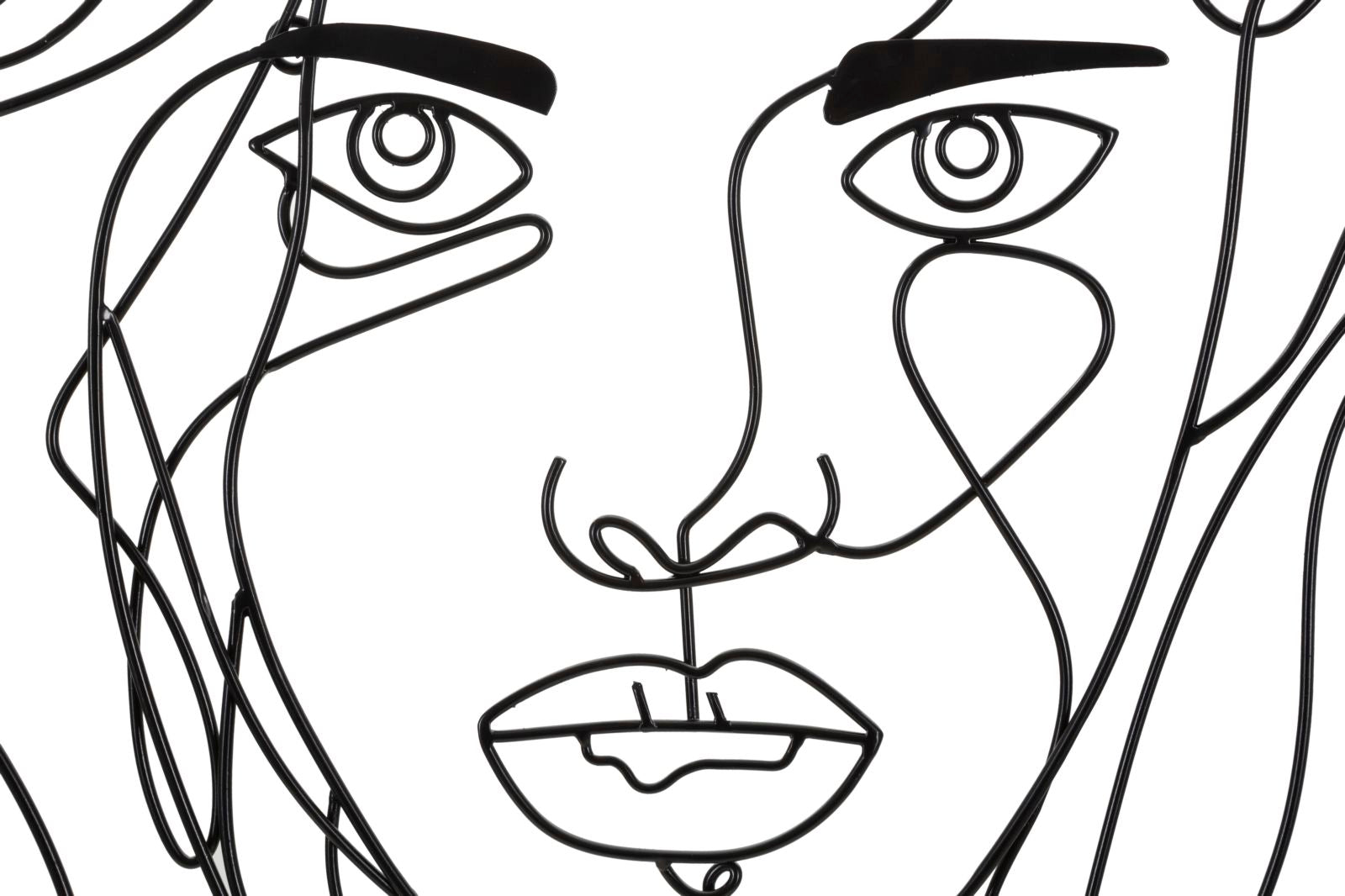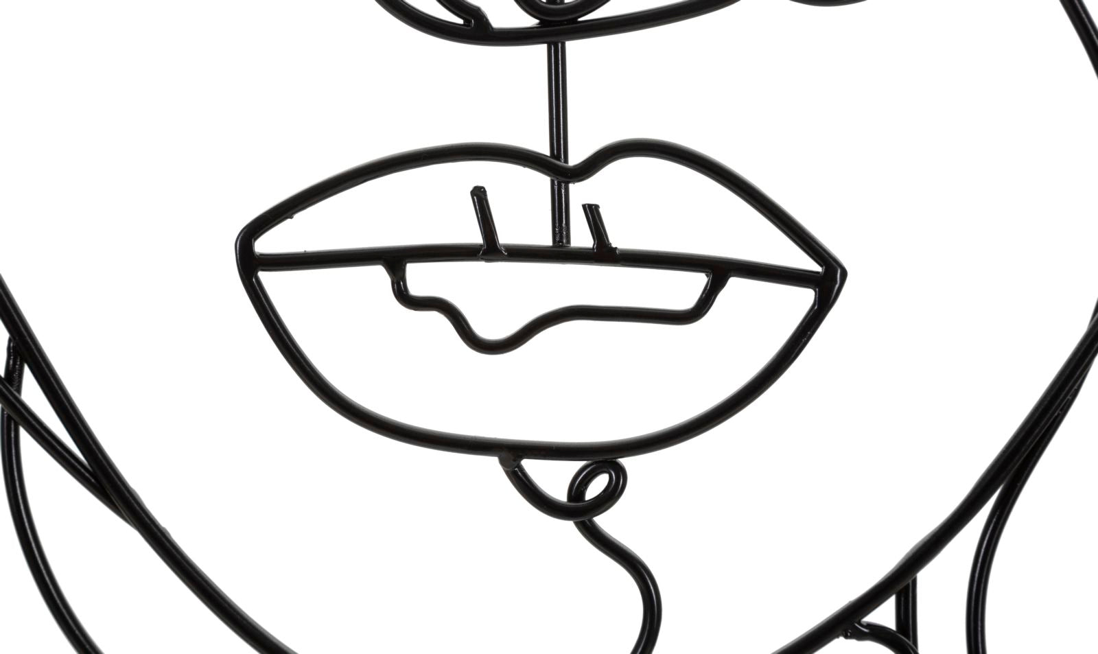 Pannello decorativo 3D da parete in metallo nero dai tratti delicati e sinuosi che vanno a comporre un volto di ragazza.