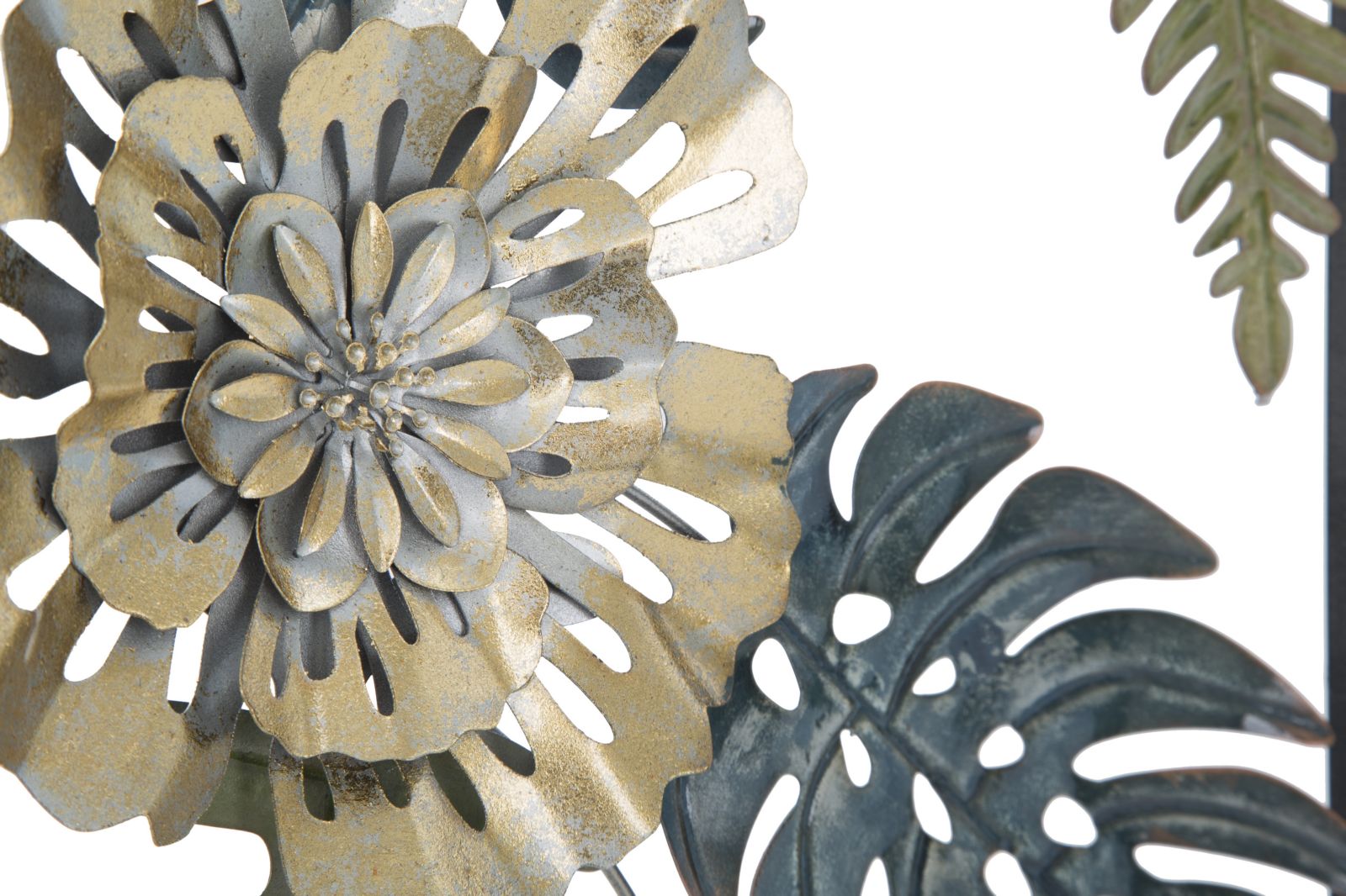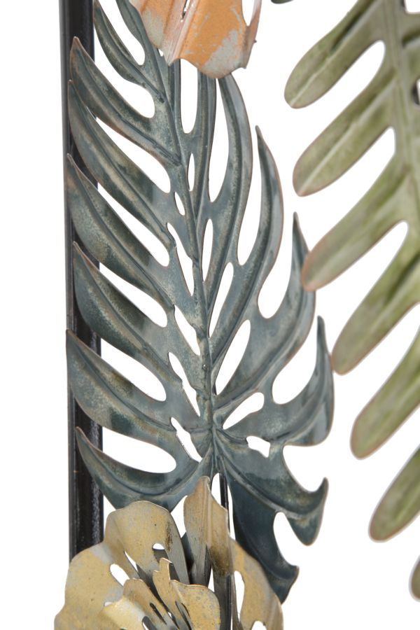 Pannello rettangolare con foglie in metallo. I pannelli 3D sono il nuovo trend per decorare le pareti. Il metallo laccato si declina in forme geometriche, vegetali o animali che conferiscono un'allure glamour e sorpendente ad ogni ambiente