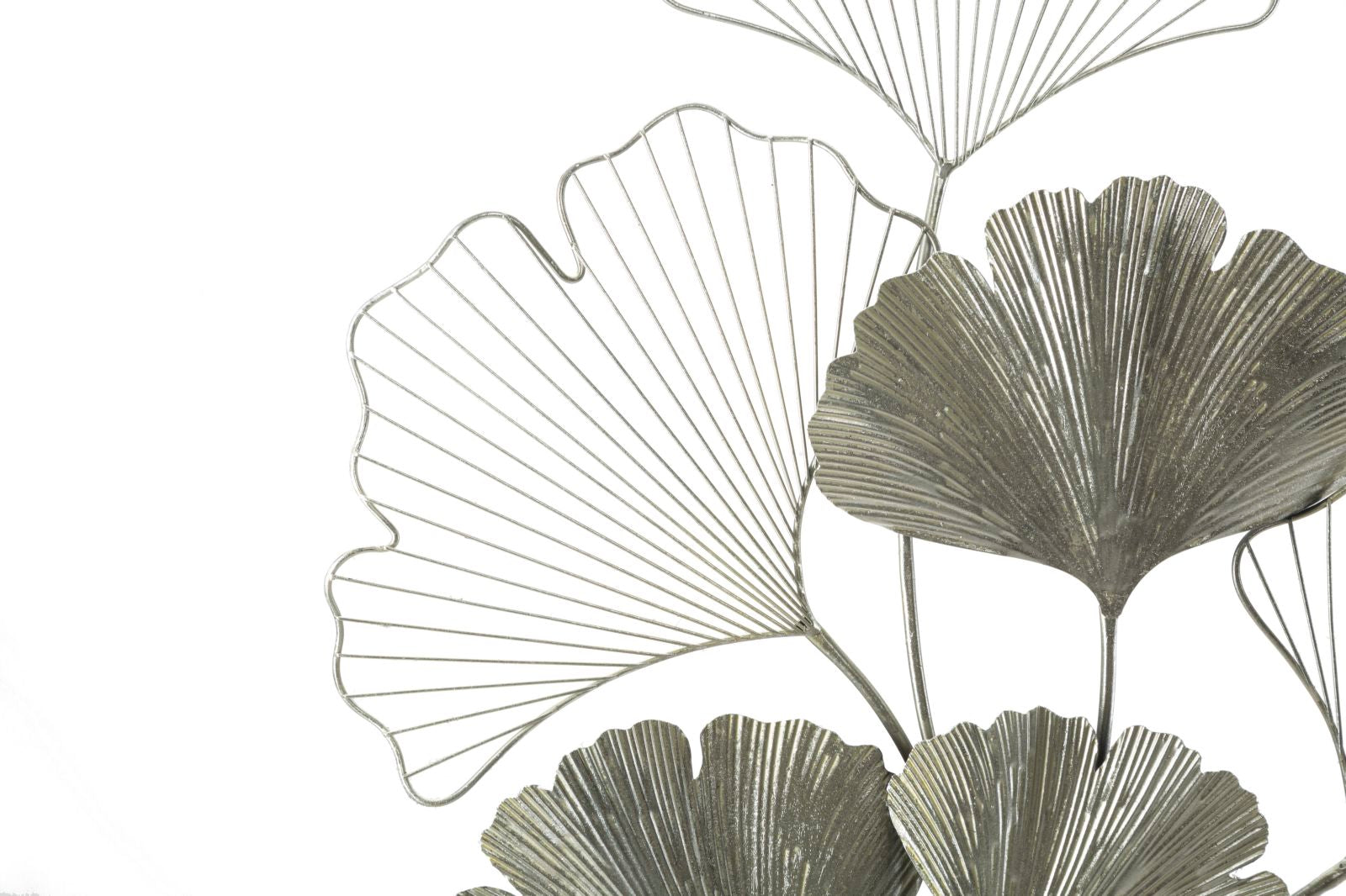 Pannello foglie in metallo argento. I pannelli 3D sono il nuovo trend per decorare le pareti. Il metallo laccato si declina in forme geometriche, vegetali o animali che conferiscono un'allure glamour e sorpendente ad ogni ambiente