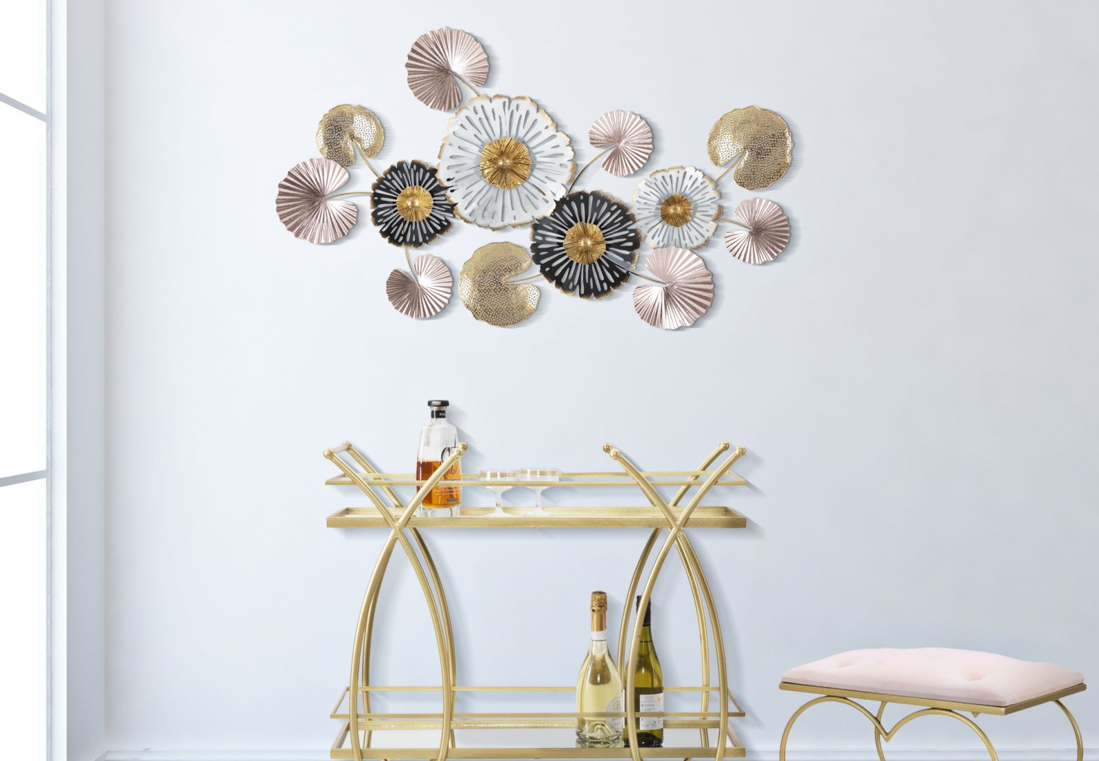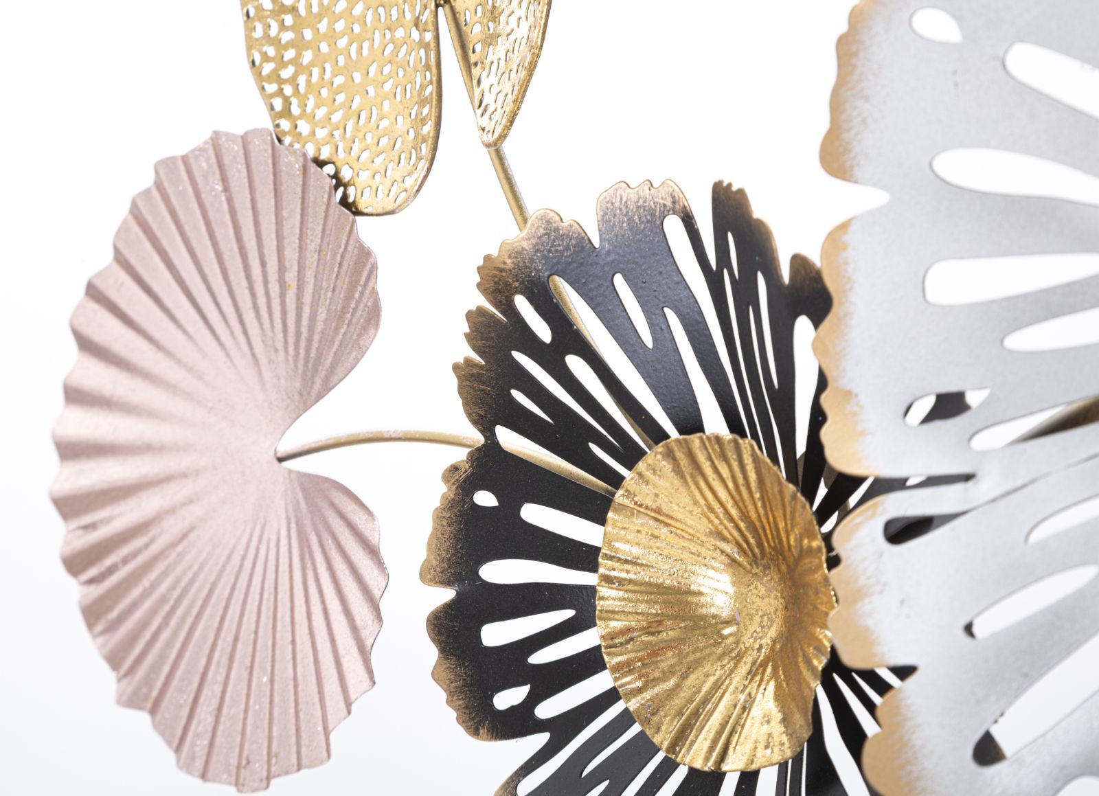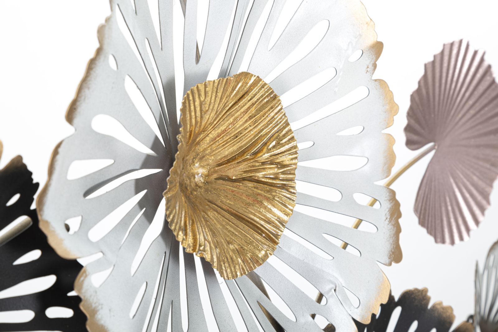 Pannello in metallo dal design floreale. I pannelli 3D sono il nuovo trend per decorare le pareti. Il metallo laccato si declina in forme geometriche, vegetali o animali che conferiscono un'allure glamour e sorpendente ad ogni ambiente.