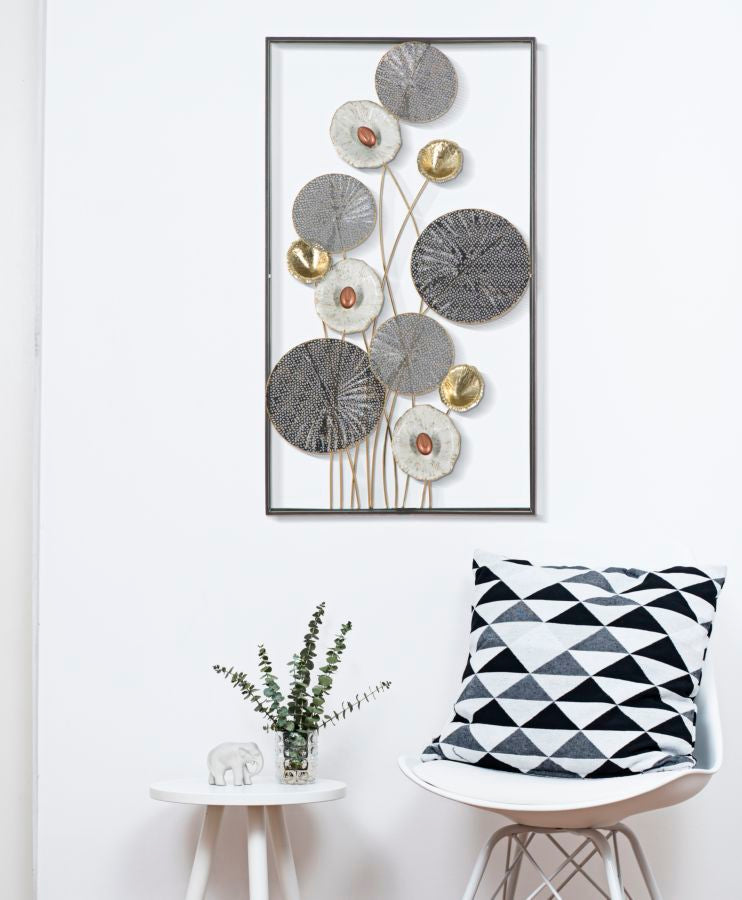 Pannello astratto in metallo. I pannelli 3D sono il nuovo trend per decorare le pareti. Il metallo si declina in forme geometriche, vegetali o animali che conferiscono un'allure glamour e sorpendente ad ogni ambiente