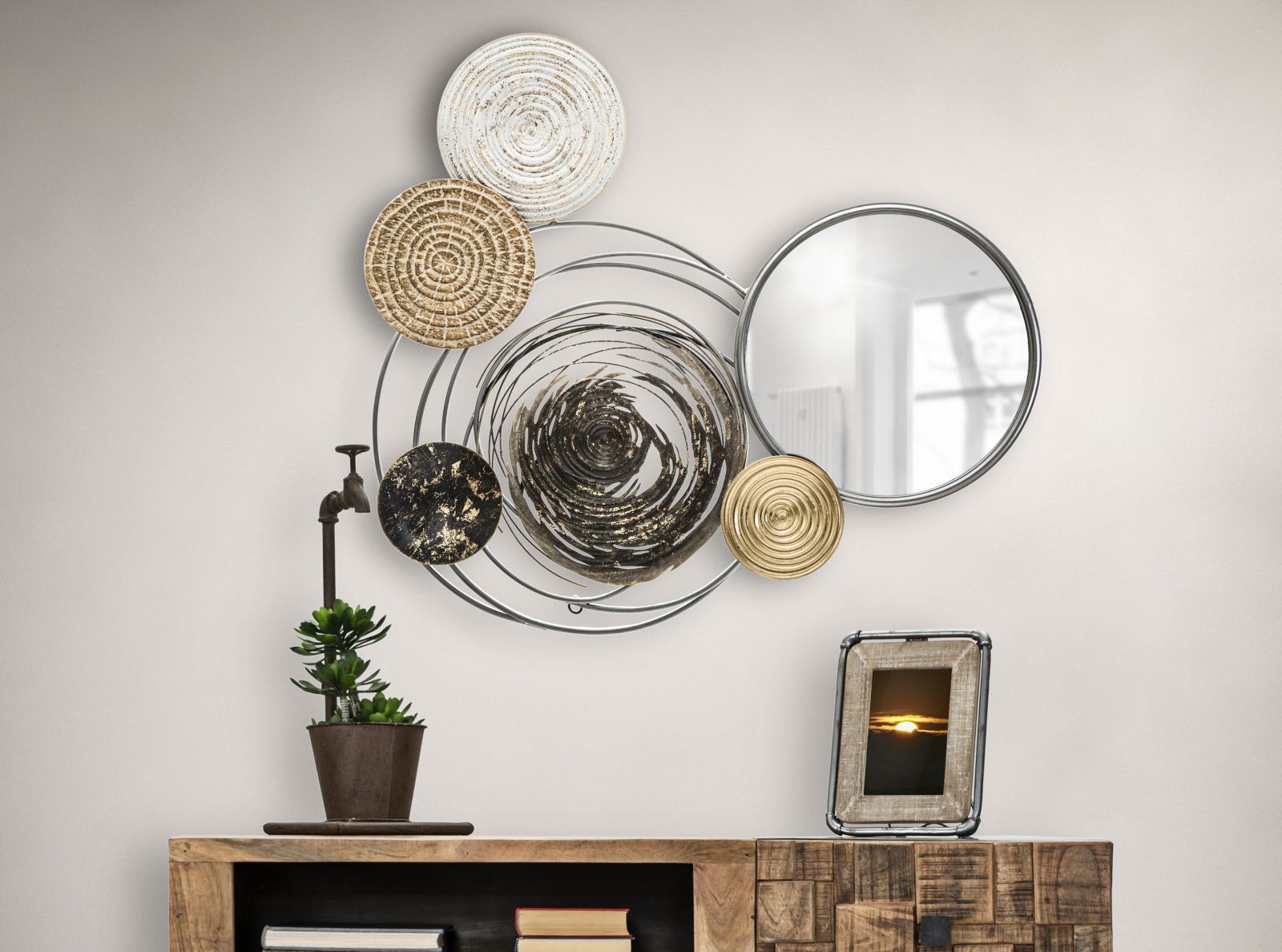 Pannello astratto in metallo con specchio. I pannelli 3D sono il nuovo trend per decorare le pareti. Il metallo si declina in forme geometriche, vegetali o animali che conferiscono un'allure glamour e sorpendente ad ogni ambiente