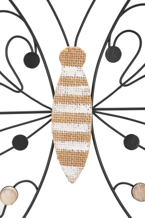 Pannello decorativo 3D da parete in metallo e legno a forma di farfalla.