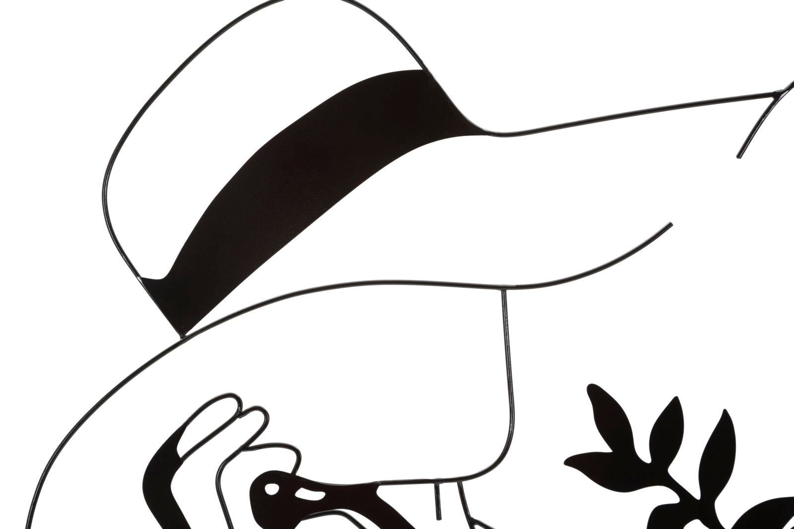 Pannello decorativo 3D da parete dai tratti semplici ed essenziali che vanno a comporre una figura femminile con un elegante cappello, il tutto racchiuso in una cornice rettangolare.