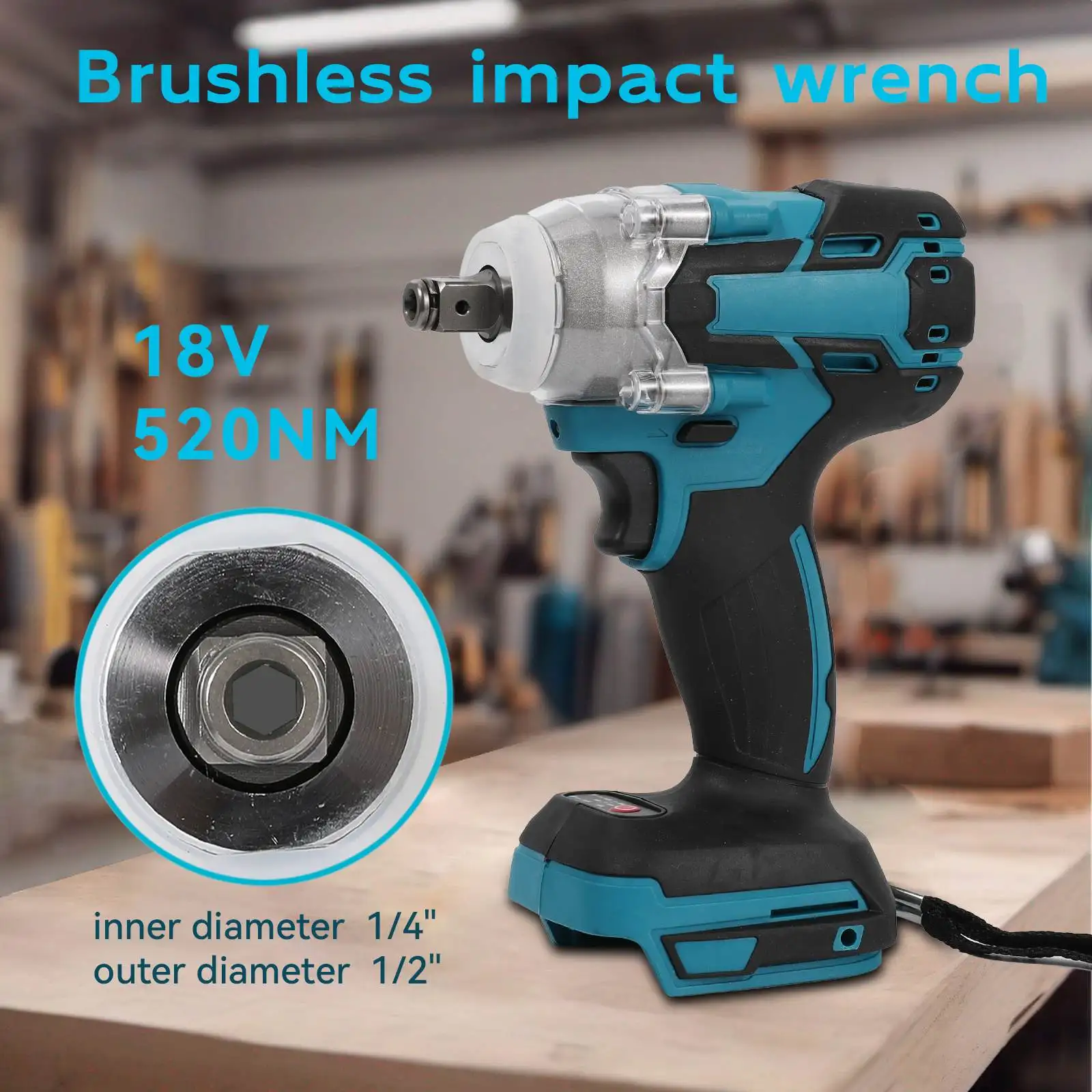 Perceuse ½Ç percussion ¹Èlectrique sans fil, sans balais, perceuse ½Ç main, outil ¹Èlectrique ½Ç douille, batterie Makita 18V, 520 N.M, 1/2"