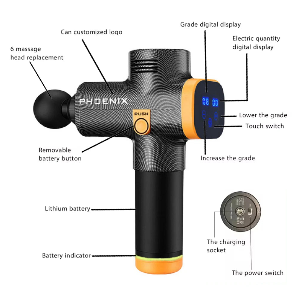 Pistolet de massage facial A2, masseur ¹Èlectrique pour corps mort ¹Èlev¹È, d¹Ètermination profonde, 20 vitesses, ¹Ècran LCD, relaxation musculaire, black-6D