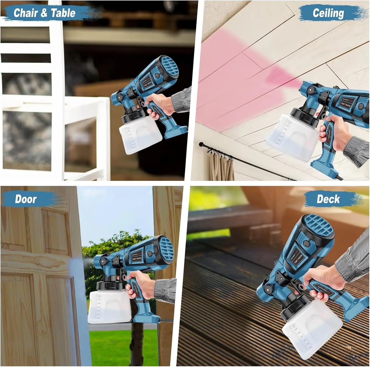 Pistolet pulv¨¦risateur ¨¦lectrique haute puissance, pulv¨¦risateur de peinture HVLP, a¨¦rographe pour meubles automatiques, rev¨ºtement en acier, bricolage ¨¤ la maison, 4 buses, 1400ml, 800W