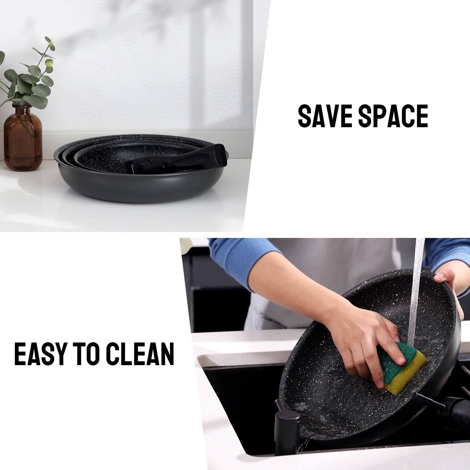 R¹Èsistant aux taches et durable-Notre ensemble de poÄÇles antiadh¹Èsives noires est extrÄÇmement durable et le fond de la poÄÇle ne jaunira pas et ne br?lera pas aprõ¹s une utilisation ½Ç long terme.