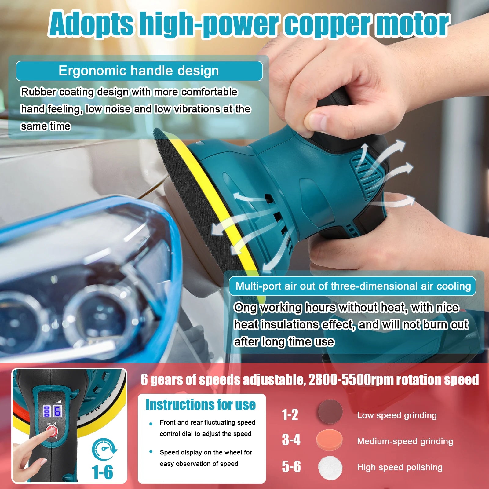 Polisseur de voiture:Machine de polissage et de cirage professionnelle, fonctionnement lisse et uniforme, ne blessera pas la peinture de la voiture, laissez la voiture restaurer, aussi brillante que neuve.