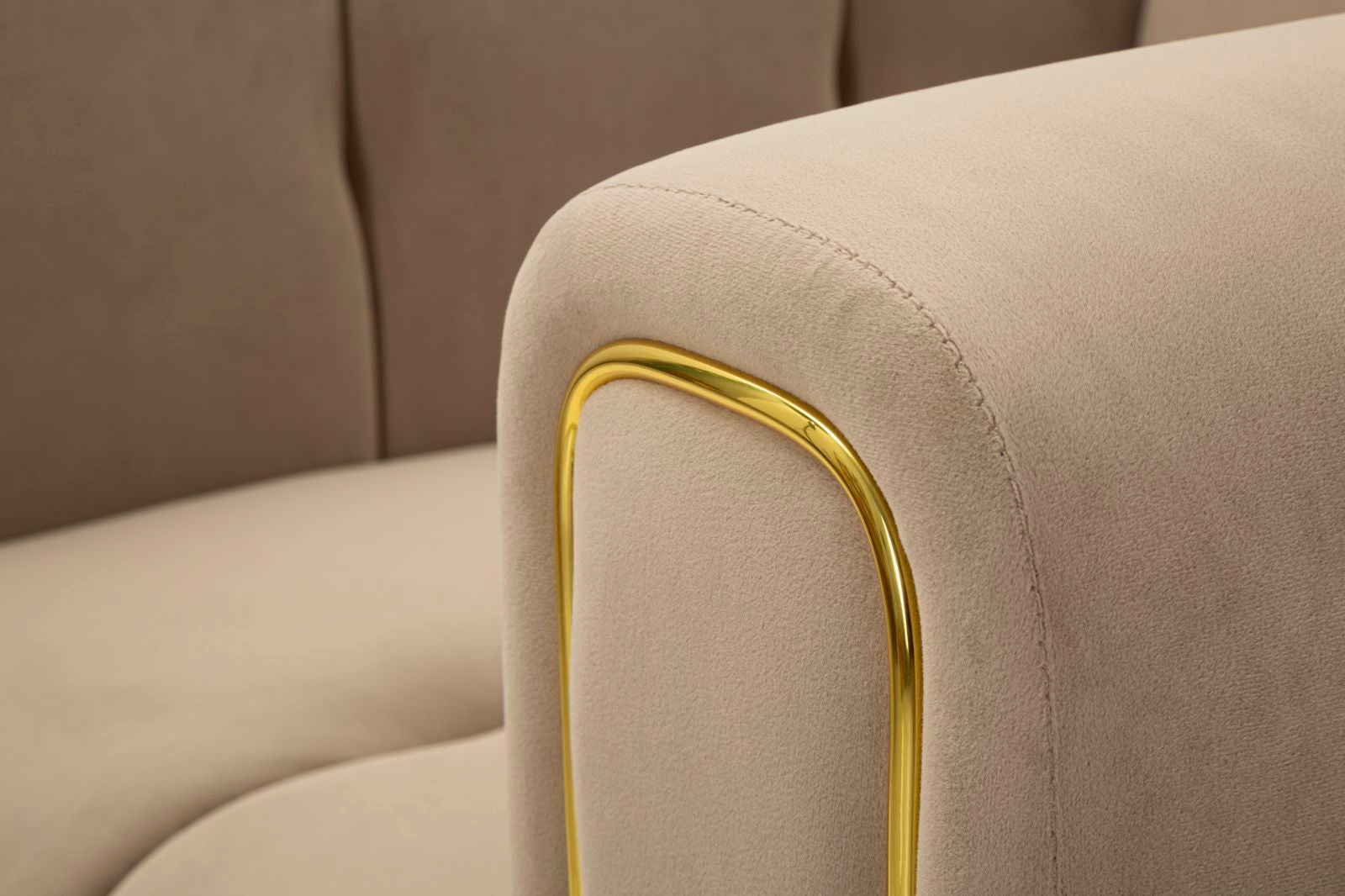 Poltrona tortora con gambe dorate da assemblare, rivestito in velluto trapuntato. Ideale per ambienti moderni e raffinati, aggiunge un tocco di lusso e comfort.