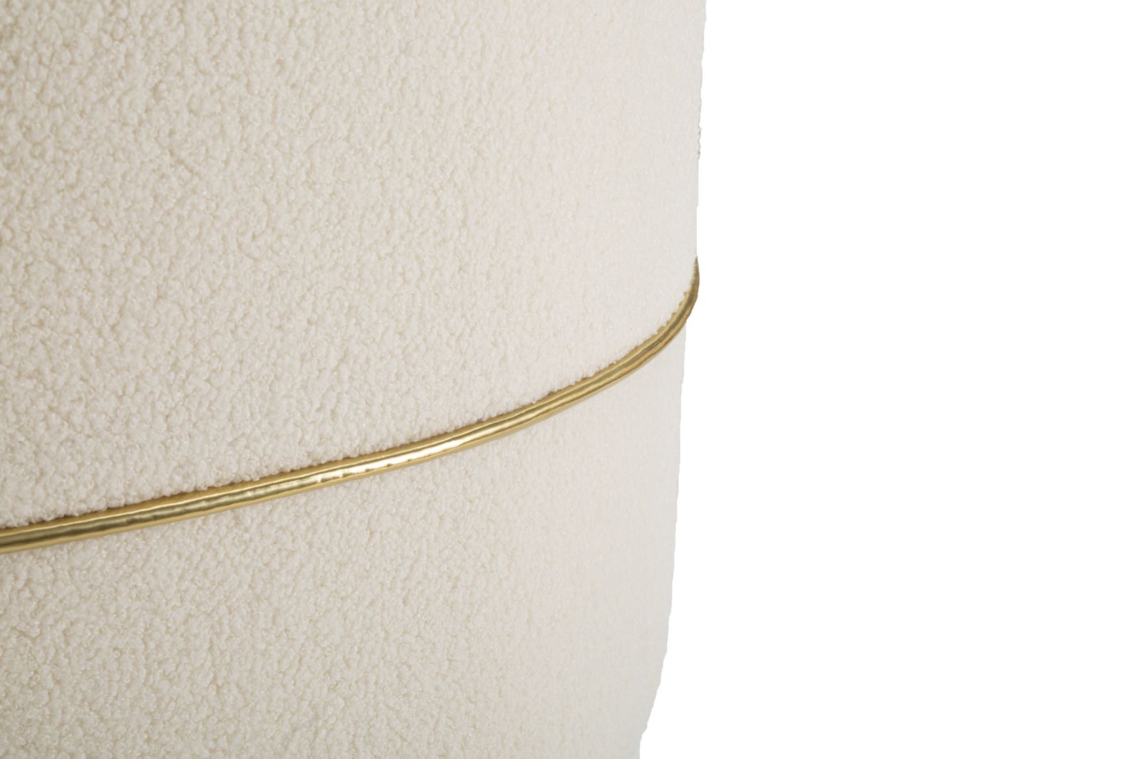 Elegante poltroncina rotonda in tessuto imbottito con schienale, dalle linee semplici e moderne, impreziosita da decorazioni dorate. Completa di cuscino.