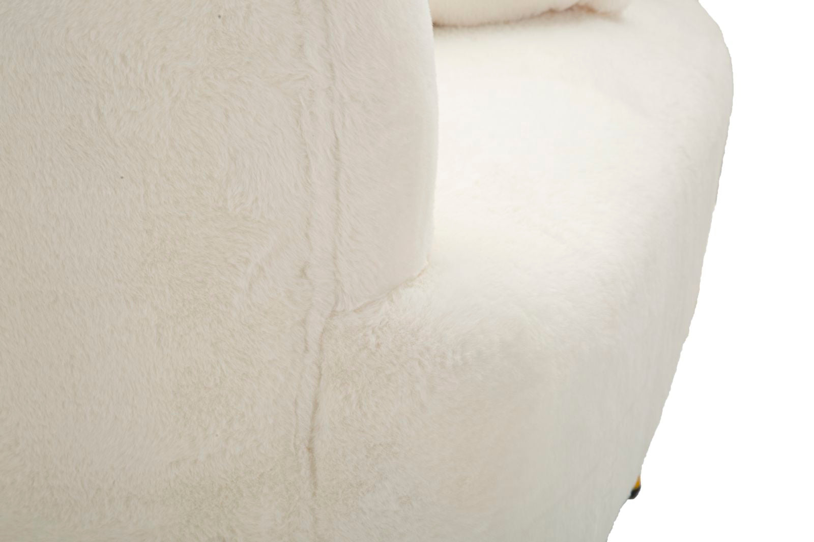 Poltrona bianca con gambe dorate da assemblare, rivestito in morbida pellliccia sintetica. Ideale per ambienti moderni e raffinati, aggiunge un tocco di lusso e comfort.