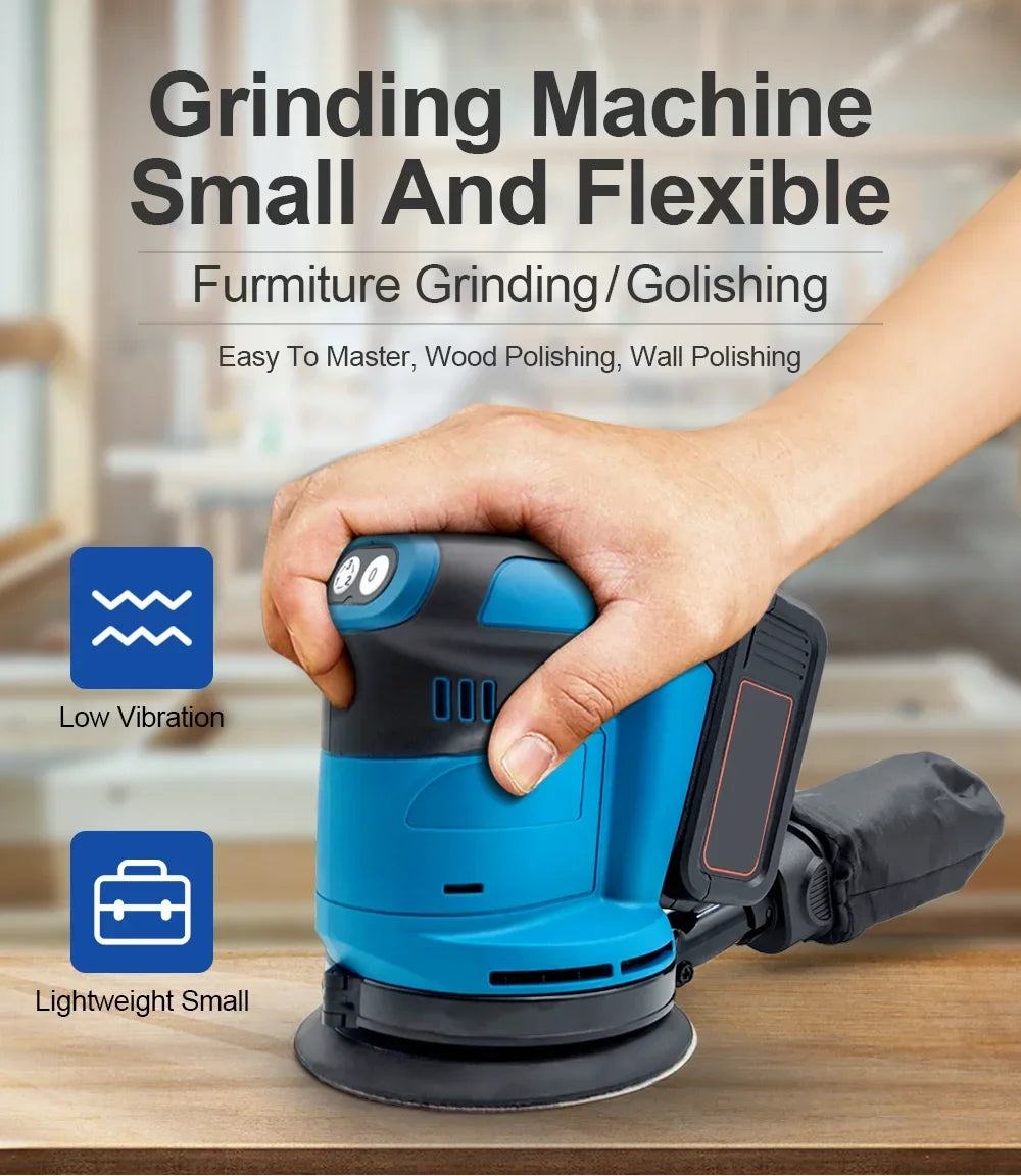 Ponceuse orbitale al¹Èatoire sans fil, meuleuse ½Ç bois, polissage, meulage ¹Èlectrique avec papier de verre, polisseuse ½Ç batterie Makita 18V, 3 vitesses