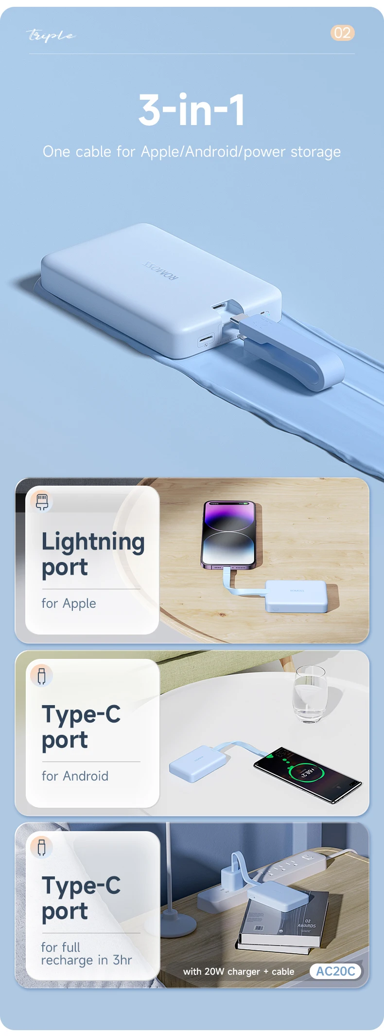 Batterie externe Magsafe 10000mAh avec cable int¨¦gr¨¦, chargeur magn¨¦tique sans fil 20W, pour iPhone 12 ¨¤ 14