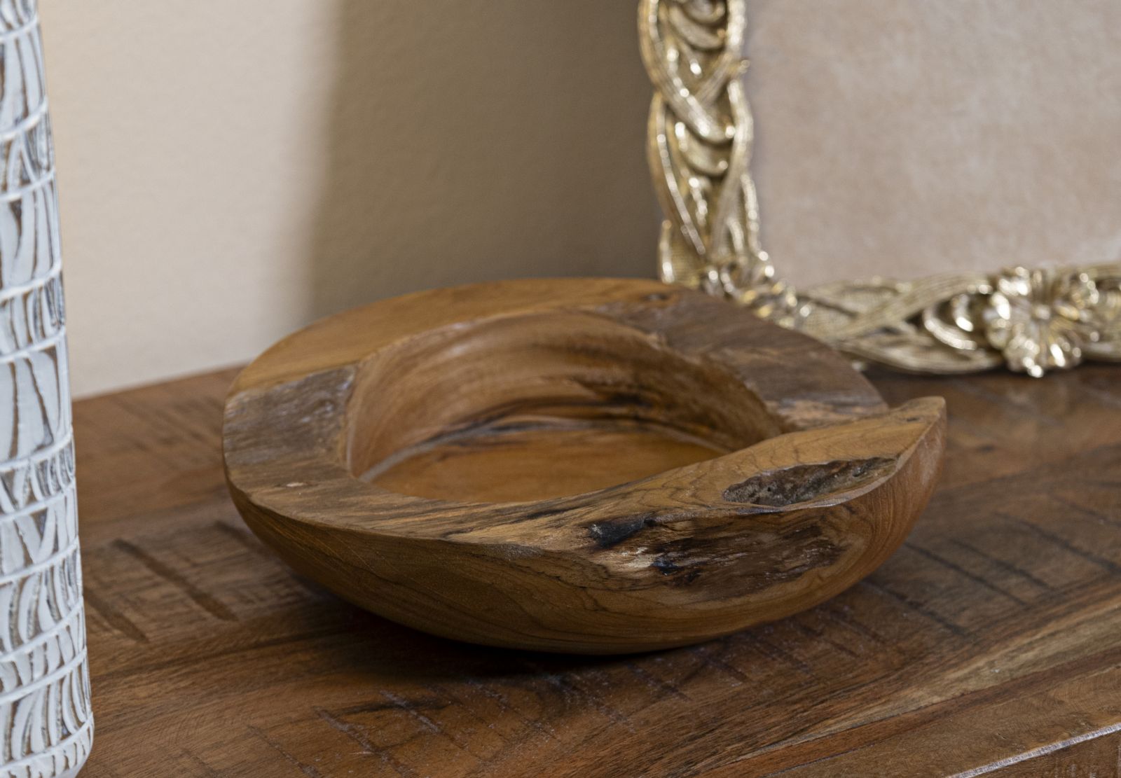 Svuotatasche in teak riciclato, dalle forme sinuose e realizzato a mano, unisce eleganza e sostenibilit¨¤. Le sue curve avvolgenti e il legno caldo trasformano ogni momento quotidiano in un'esperienza di raffinata bellezza.