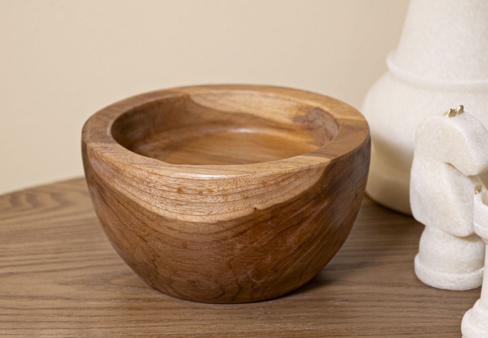 Svuotatasche in teak riciclato, dalle forme sinuose e realizzato a mano, unisce eleganza e sostenibilit¨¤. Le sue curve avvolgenti e il legno caldo trasformano ogni momento quotidiano in un'esperienza di raffinata bellezza.