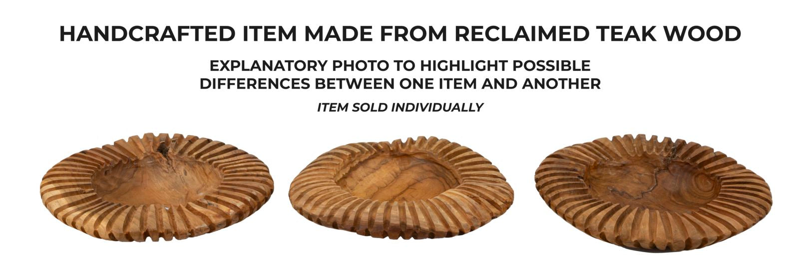 Svuotatasche dalle forme tondeggianti in teak riciclato, realizzato a mano con bordo intagliato, emana una raffinata eleganza. La sua superficie calda e levigata racconta una storia di artigianato e sostenibilit¨¤, trasformando ogni gesto quotidiano in un momento di bellezza e serenit¨¤.