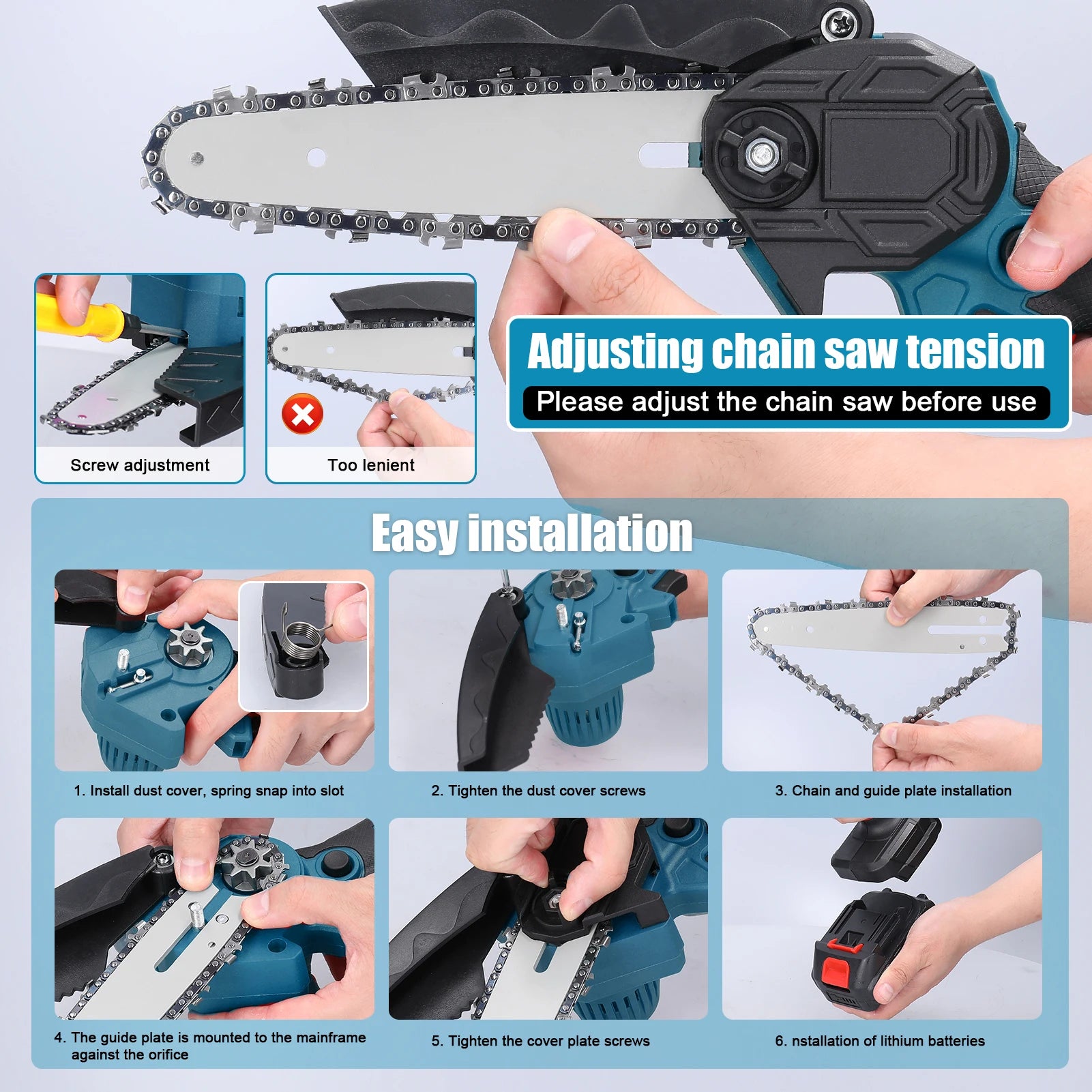 Scies ½Ç ¹Èlaguer ¹Èlectriques, petite tron?onneuse ½Ç fendre le bois, moteur ½Ç brosse, outil de travail de calcul ½Ç une main pour la coupe de verger de jardin, 21V, 6 po