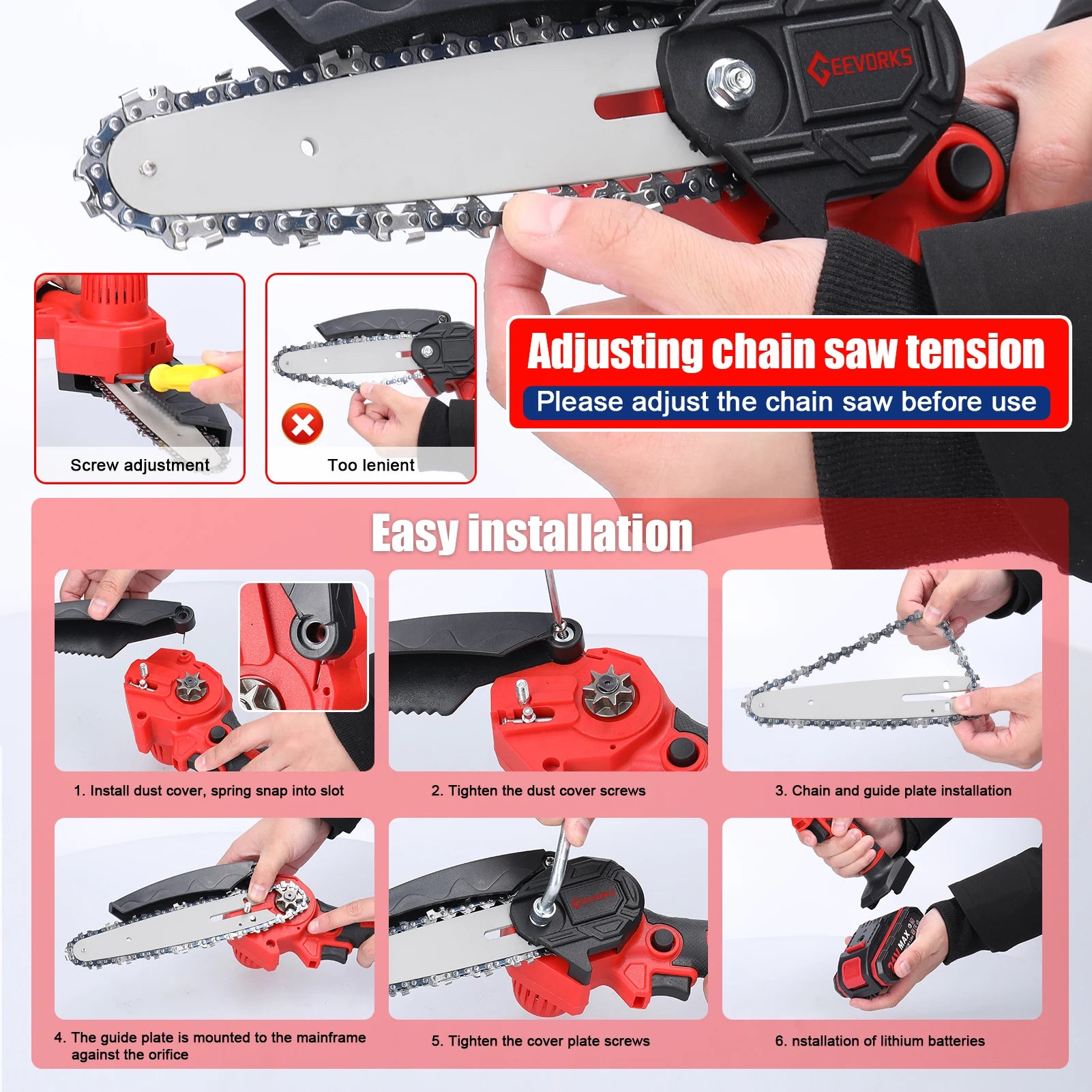 Scies d'¹Èlagage ¹Èlectriques, petit moteur de brosse de tron?onneuse ½Ç fendre le bois, outil de travail de calcul ½Ç une main pour jardin et verger, 21V, 6 po