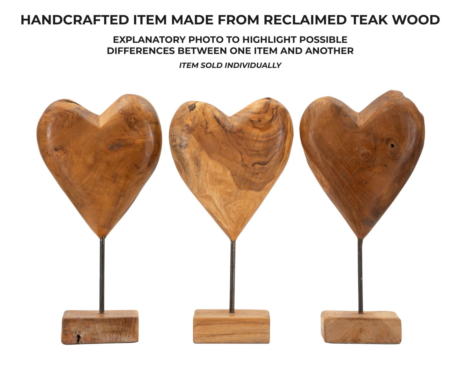 Scultura a forma di cuore, realizzata a mano in teak riciclato, emana una calda intimit¨¤ e un'energia rinnovata. La sua eleganza rustica e le venature naturali del legno evocano sentimenti di amore e autenticit¨¤.