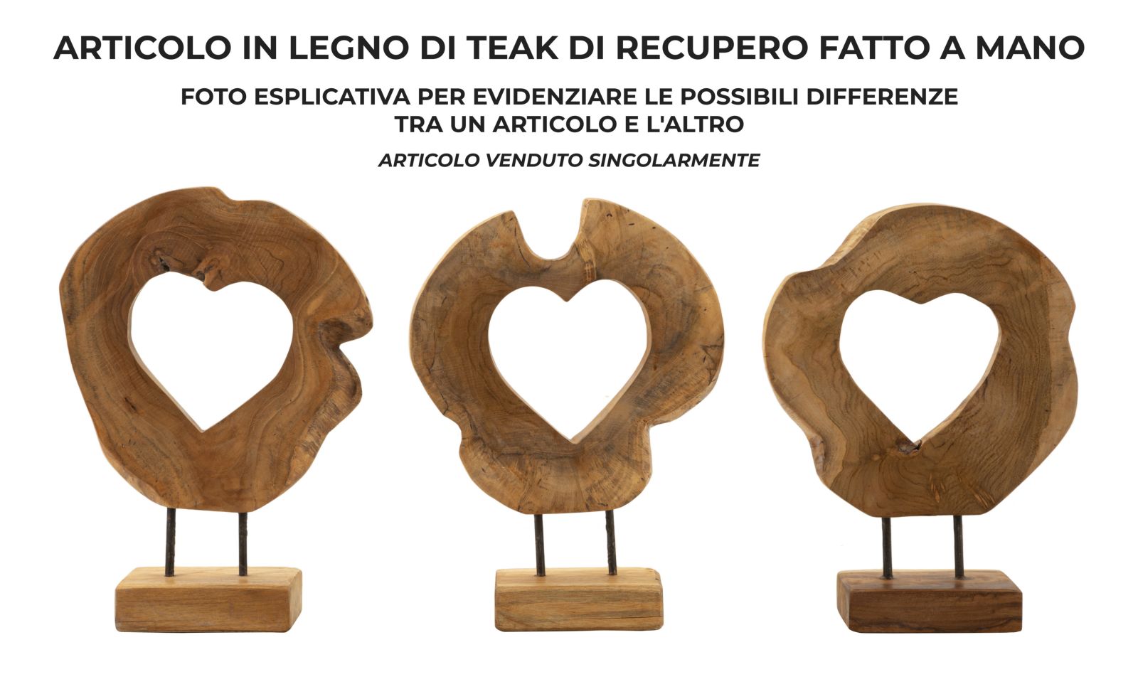 Scultura in teak riciclato, dalle forme irregolari e con un'elegante apertura a cuore, emana una calda sensazione di rinascita e amore. Ogni dettaglio, realizzato a mano, racconta una storia di bellezza imperfetta e autenticit¨¤.