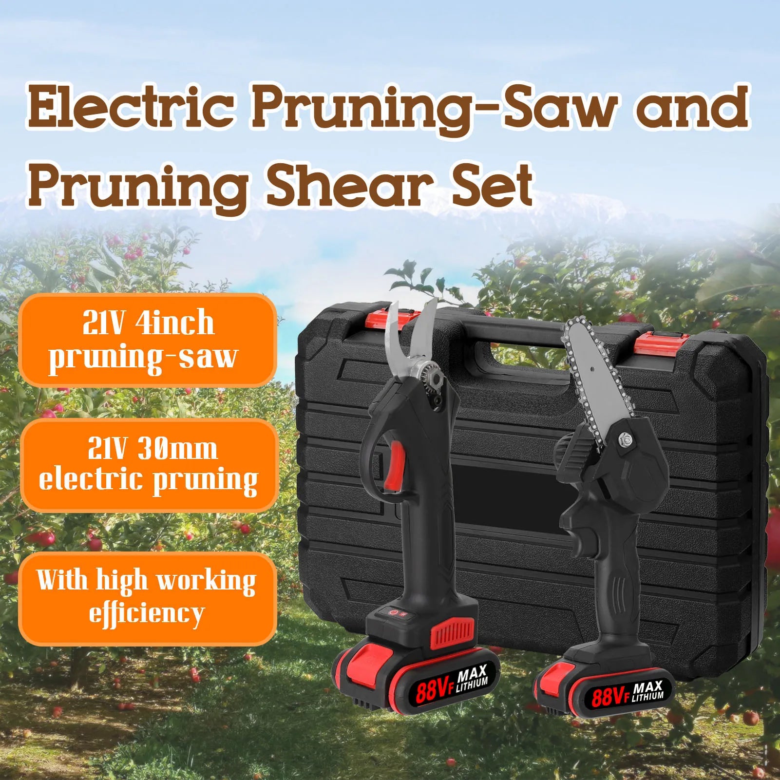 Il s'agit d'une sorte de scie d'¹Èlagage de qualit¹È 21V 4 pouces et d'un ensemble de s¹Ècateur ¹Èlectrique 21V 30mm, l¹Èger et portable, la poign¹Èe est conforme ½Ç la conception technique humaine, facile ½Ç utiliser et ¹Èconomie d'effort. Parfait pour l'¹Èlagage, le fendage du bois de chauffage, la coupe du bois, la coupe ou la coupe ou moins de branches dans les vergers, les vignobles, etc. Vous pouvez essayer.
