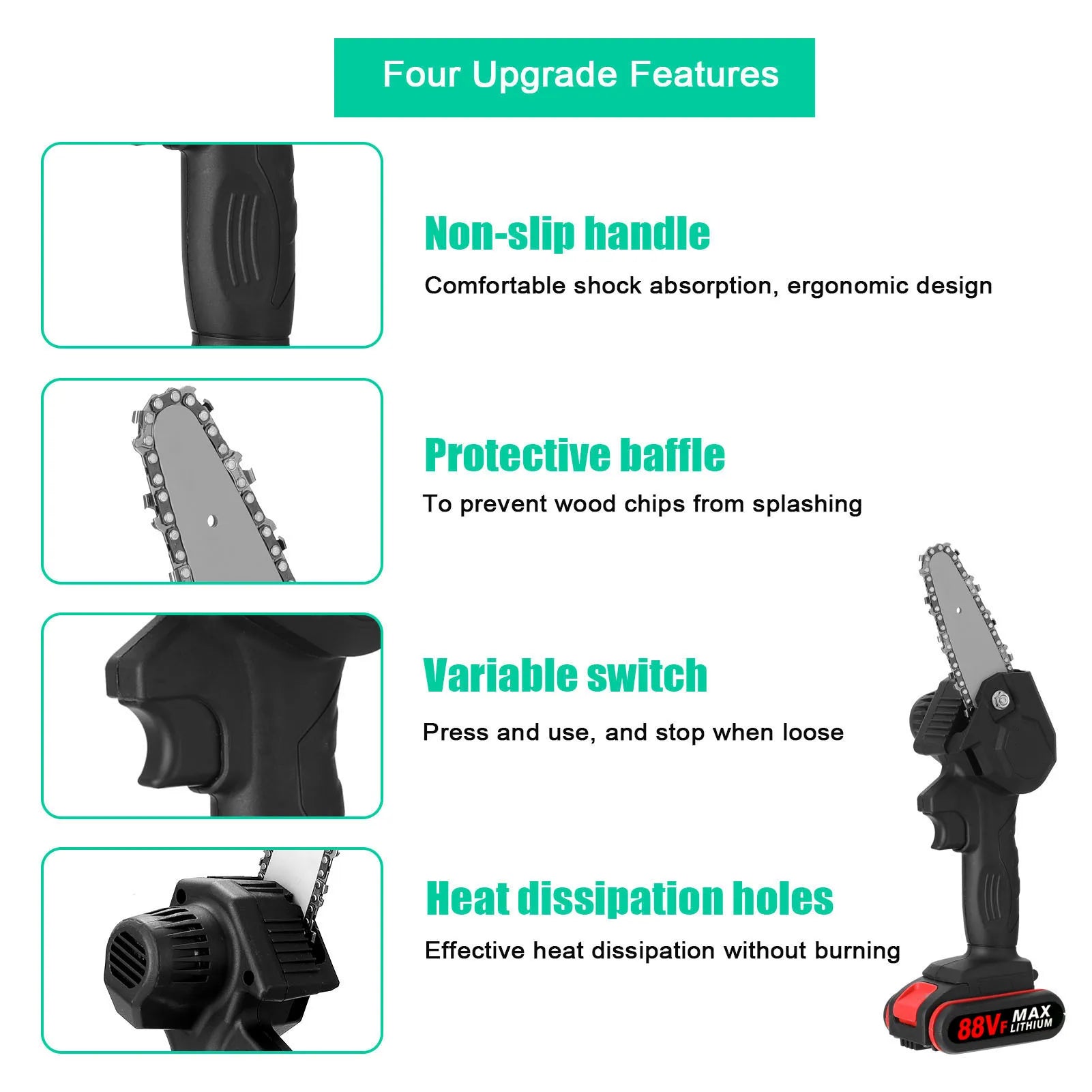 S¹Ècateur ¹Èlectrique sans fil, moteur sans balais, moteur ½Ç brosse de 4 pouces, ensemble de tron?onneuse, outil de travail de calcul, mini tron?onneuse, outil de jardin, 88VF