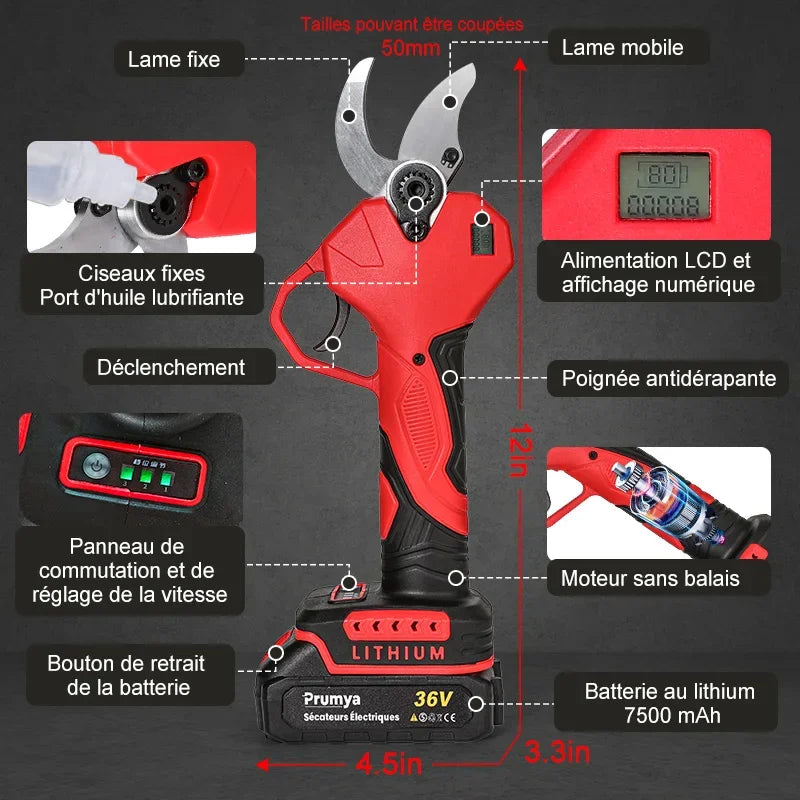S¨¦cateur ¨¦lectrique sans fil sans balais, s¨¦cateur de jardin, outil de coupe de branches d'arbres fruitiers, 1000W, 50mm, 2 piles 36V