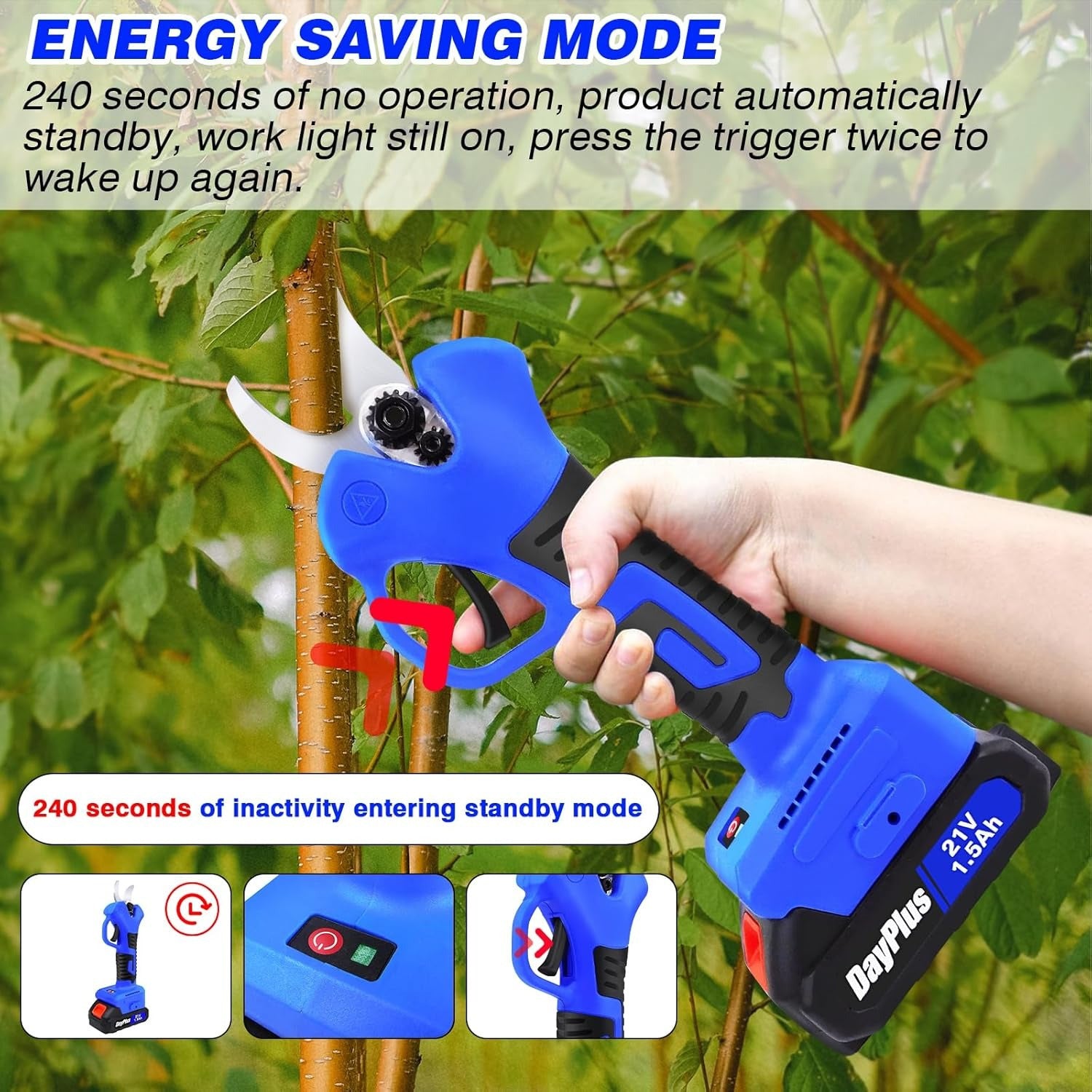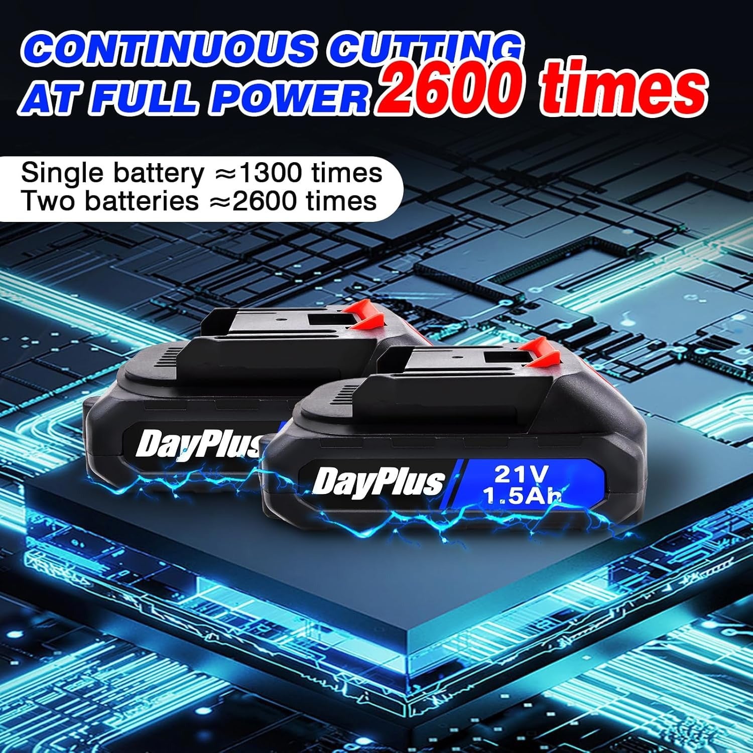-LONGUE DUR¨¦E DE FONCTIONNEMENT: Notre ciseau ¨¤ branches ¨¦lectrique est livr¨¦ avec 2 piles au lithium rechargeables de 1,5Ah. La batterie longue dur¨¦e garantit des s¨¦ances de jardinage ininterrompues. Il suffit de 2 ¨¤ 3 heures de charge compl¨¨te pour assurer 8 ¨¤ 10 heures de travail.