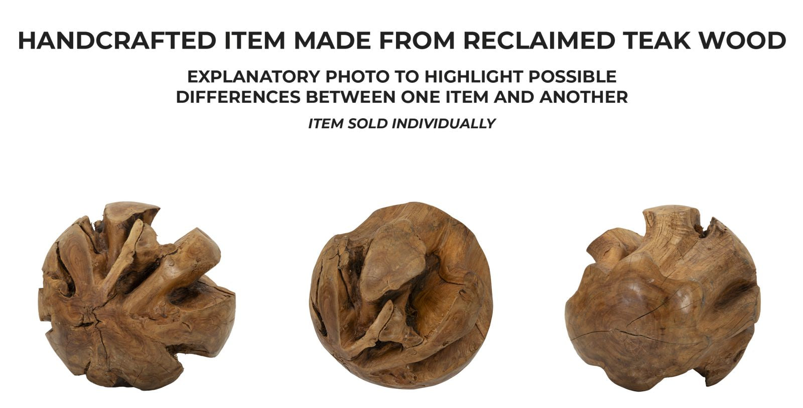 Sfera in teak riciclato lavorata a mano con cura, ¨¨ un capolavoro unico. La sua forma inusuale e il legno dal carattere distintivo evocano un senso di autenticit¨¤ e rinascita, aggiungendo un tocco di eleganza sostenibile a qualsiasi ambiente.