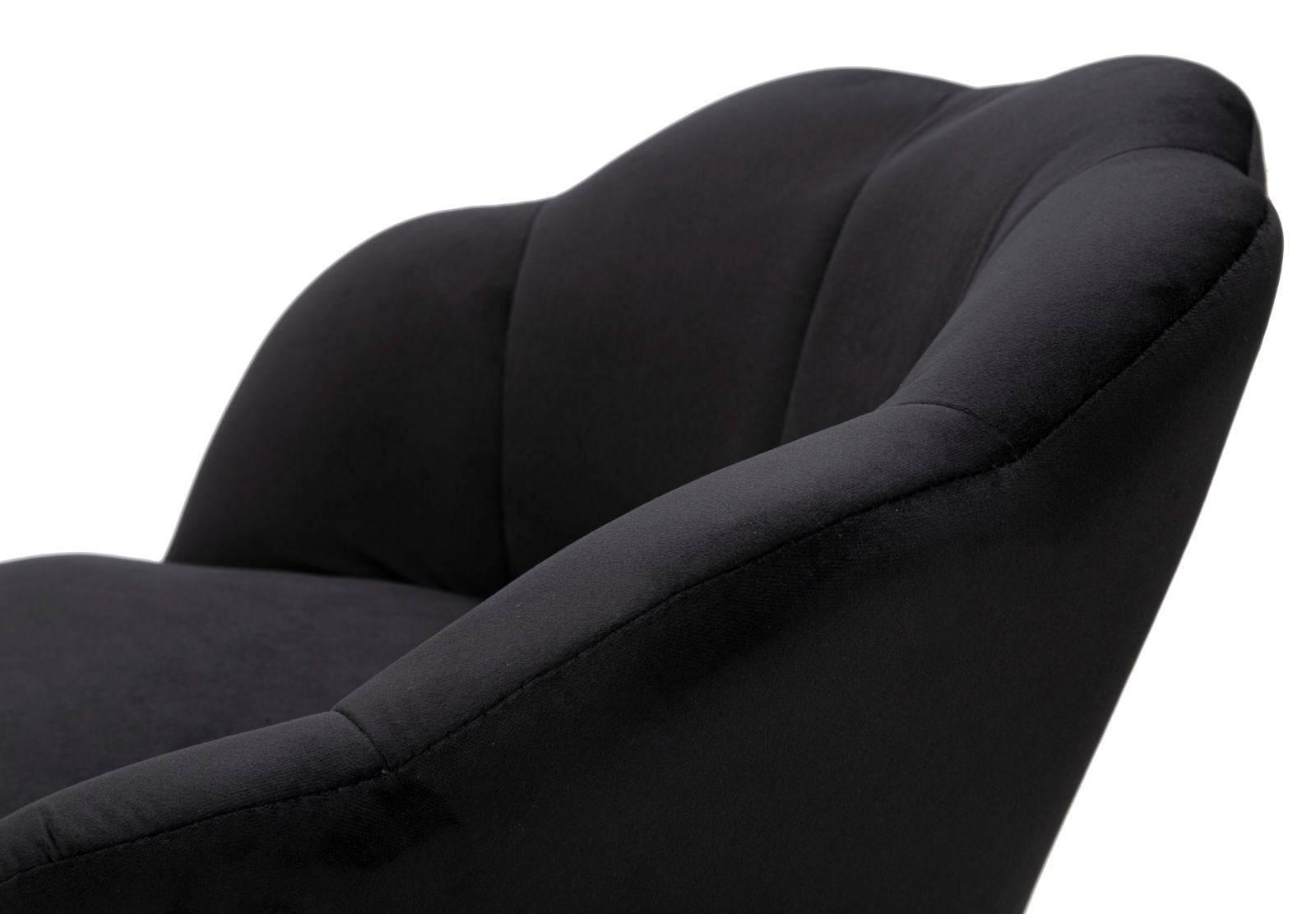 Sgabello bar in velluto nero con gambe dorate dal particolare design che richiama i petali di un fiore. L'eleganza del velluto e del metallo dorato si uniscono per creare uno stile unico.
