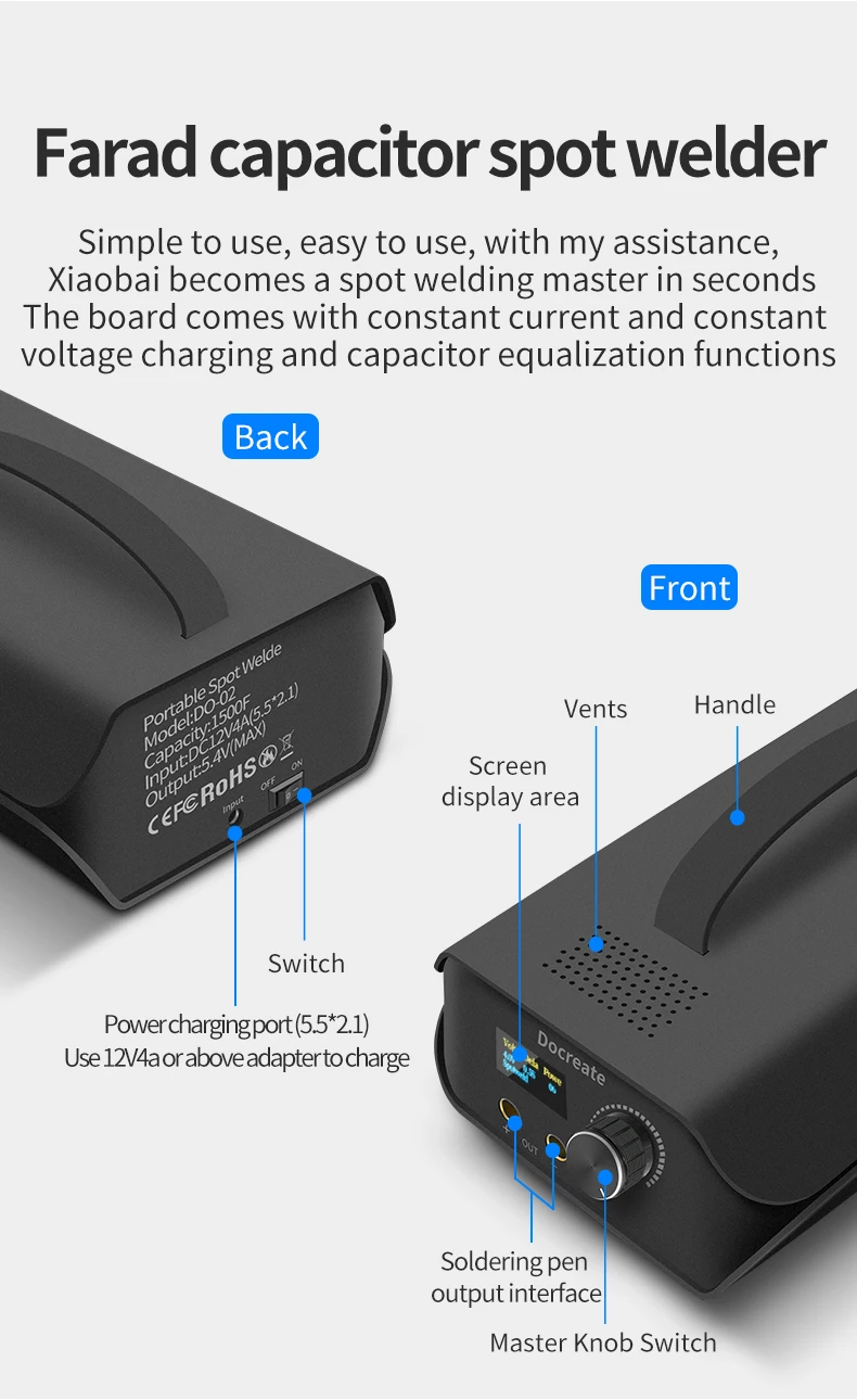 Soudeuse par points portable en d¹Ègrad, condensateur farad, feuille de stockage d'¹Ènergie bricolage, mini maison, batterie au lithium 0.3, soudure, 18650mm