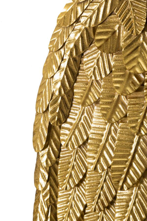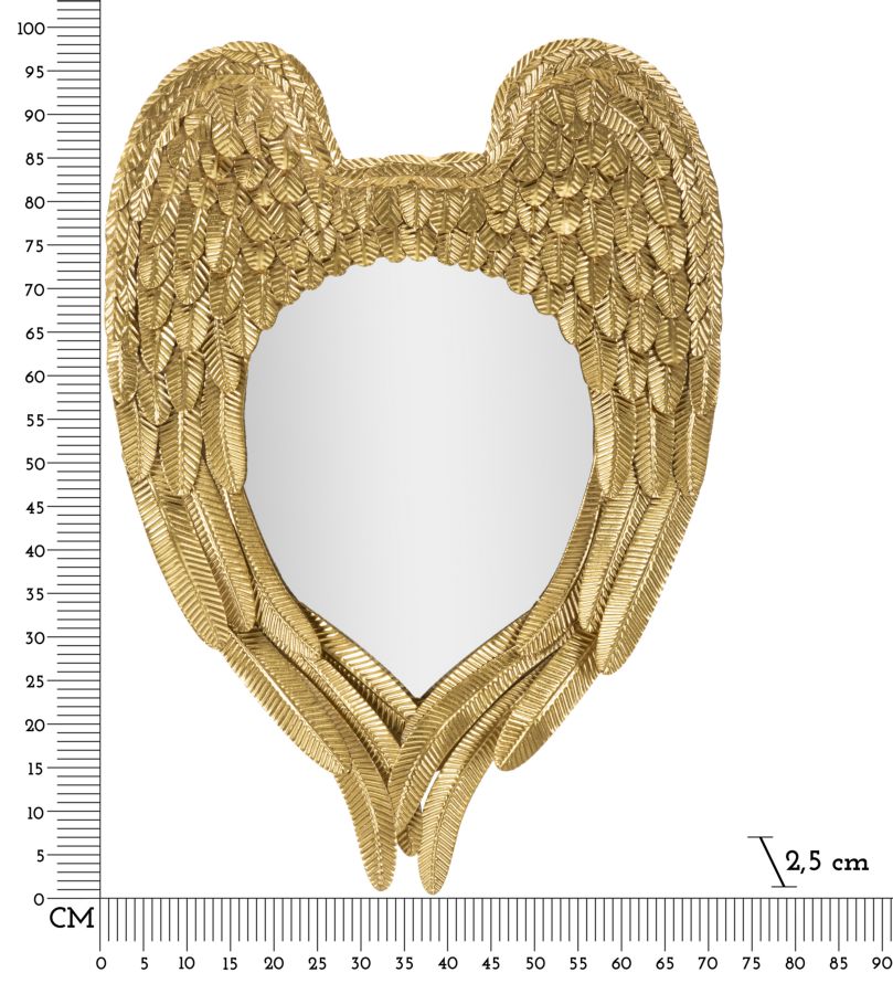 Specchio da parete con cornice in metallo dorato a forma di paio di ali che si accoppiano.