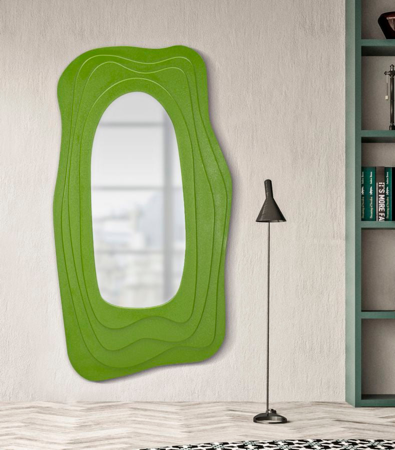 Specchio da parete verde dalle forme sinuose, perfetto per dare un tocco moderno a qualsiasi ambiente. Ideale per aggiungere un tocco di creativit¨¤ e stile alle pareti di casa tua.